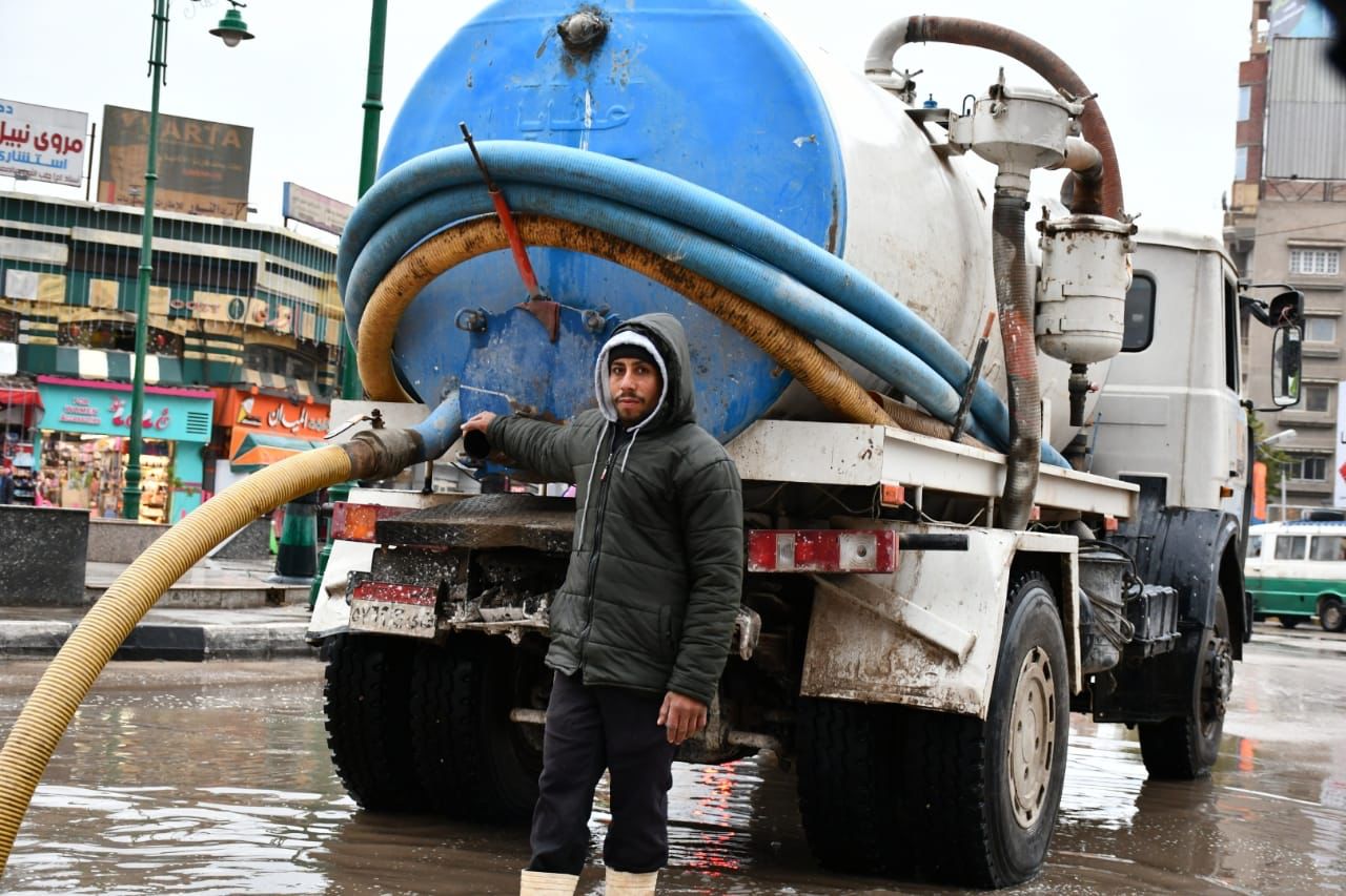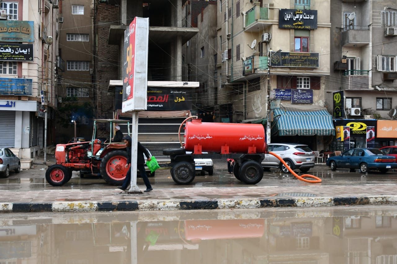 في ظل موجة الطقس السيء التي تحتاج البلاد، تتواصل أعمال رفع مياه الأمطار من شوارع محافظة الفيوم لتيسير حركة المشاة والسيارات.