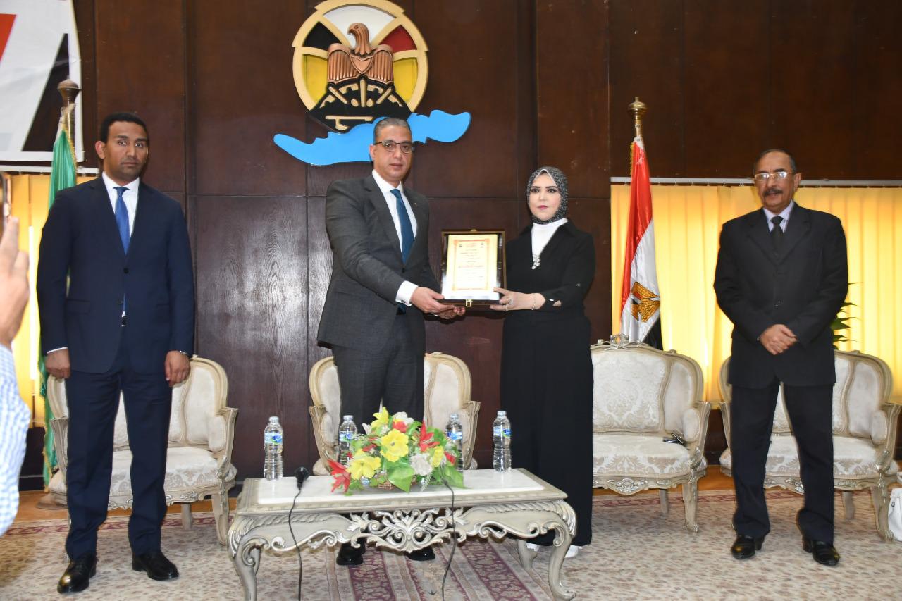 وفى نهاية الحفل قدمت الدكتورة مرفت عبد العظيم درعاً لمحافظ الفيوم تقديراً لجهوده المتعددة فى الارتقاء بكافة القطاعات على أرض المحافظة.