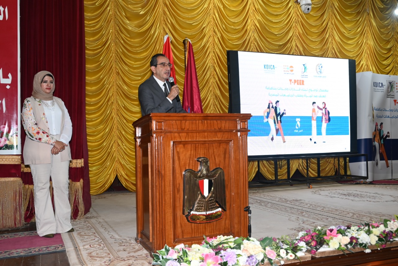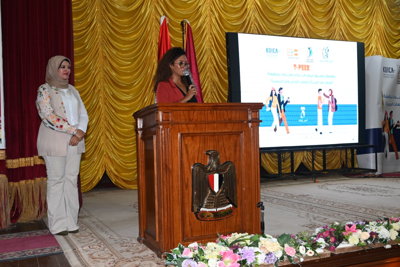 جاء هذا بحضور كلاً من أ.د محمد فاروق الخبيري، نائب رئيس الجامعة لشئون التعليم والطلاب وأ.د عرفة صبري حسن، نائب رئيس الجامعة لشئون الدراسات العليا والعلاقات الثقافية والبحوث، وعدد من عمداء الكليات، ووكلاء صندوق الأمم المتحدة للسكان، ومقرري المجلس القومي للمرأة، بعدد من المحافظات، وممثلي وحدات مناهضة، العنف ضد المرأة بالجامعات المصرية، والوفود الطلابية المشاركة من جامعات الفيوم، وطنطا، وبني سويف، وأكاديمية الفنون، وذلك اليوم الخميس الموافق ٨ / ٩ / ٢٠٢٢ بقاعة الاحتفالات الكبرى بالجامعة.