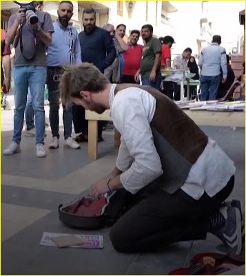 وقبل شهر تقريبا حمل هود آلة الكمان الخاصة به على ظهره، ووضع فى حقيبة خرائط تساعده على تجاوز البلدان التي تقابله في طريقه وصولًا إلى القاهرة.