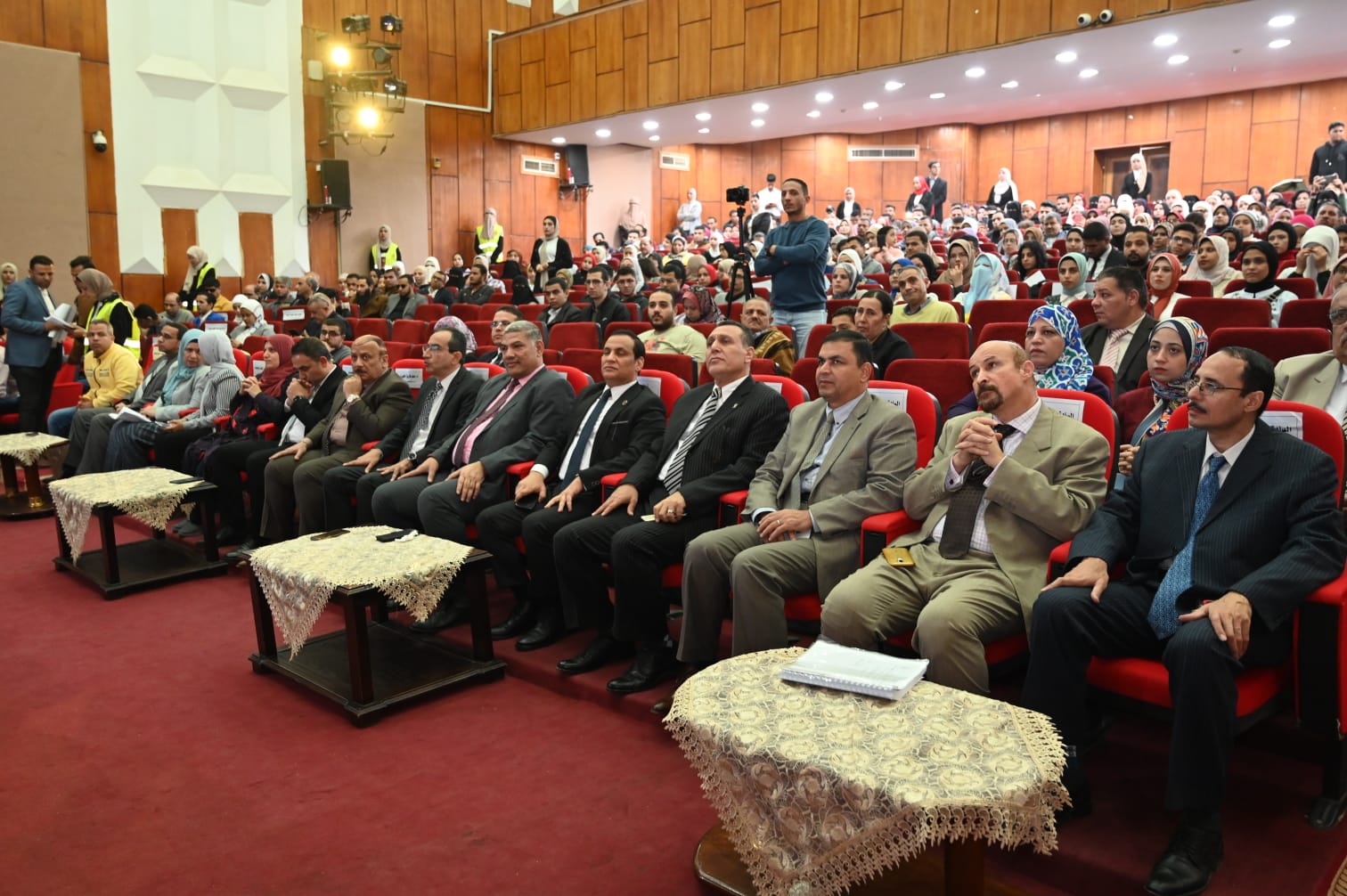 بحضور أ.د محمد فاروق الخبيري، نائب رئيس الجامعة لشئون التعليم والطلاب، وأ.د عرفة صبري حسن، نائب رئيس الجامعة لشئون الدراسات العليا والبحوث، وأ.د عاصم العيسوي، نائب رئيس الجامعة لشئون خدمة المجتمع وتنمية البيئة، وعدد من السادة عمداء الكليات ووكلائها، وأعضاء هيئة التدريس، والأستاذة حمدية محمد شعبان، وكيلة وزارة التضان الاجتماعي بالفيوم، والأستاذ ضياء محمد، مدير المشروعات بجمعية الاورمان، وإدارة وحدة التضامن الاجتماعي بالجامعة، والطلاب،