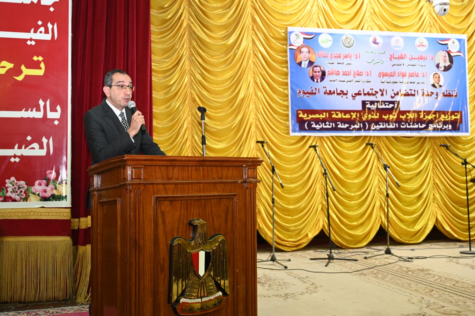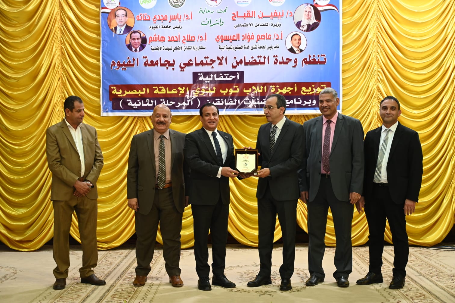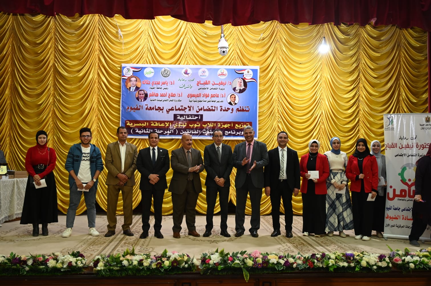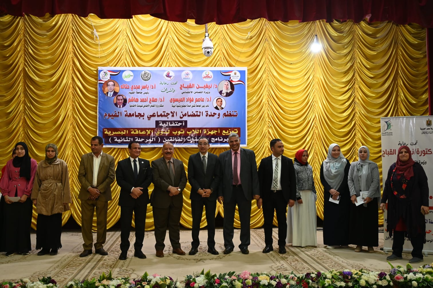 توزيع ٣٢ جهاز لاب توب.. في احتفالية لذوي الإعاقة البصرية من طلاب جامعة الفيوم