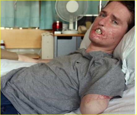 كان الألام شديدة مصحوبة بتحول لون بشرته إلى اللون الأرجواني، وتوقفت أطرافه عن أداء وظائفها، كانت تلك هى الأعراض التى شعر بها أليكس، وتطورت الحالة تطور خطير وصلت إلى فقد لويس أطرافه الأربعة، واضطر إلى الخضوع لعملية إعادة بناء الوجه، وتركته الإصابة مع التهاب الحلق وتسمم الدم بعد أن دمرت العدوى فمه بالكامل. ومع ذلك، بقى والد الطفلين على قيد الحياة، هكذا شاء الله.