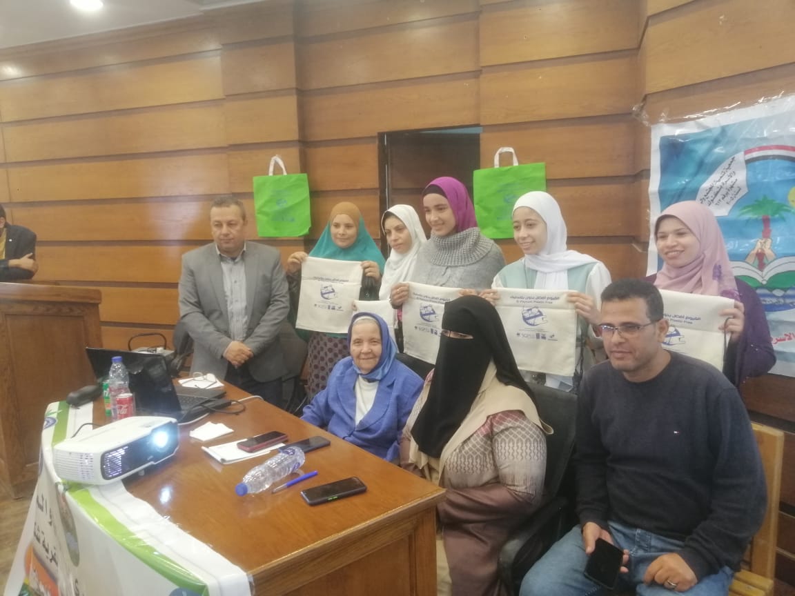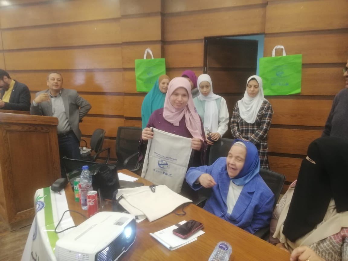 وفي نهاية الندوة تم توزيع أكياس القماش علي السيدات وأهالي المشاركين في الندوة، لتشجيعهم علي استخدامها كبديل صحي وأمن للاكياس البلاستيكية