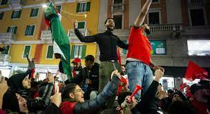 وكان فيديو فد انتشر علي مواقع التواصل الاجتماعي، يظهر أبناء الجالية المغربية بعد تجمعهم في أحد الساحات بمدينة سبيتسيا الإيطالية للإحتفال بعد إنتهاء مباراة المنخب المغربي فى دور ربع النهائى لكأس العالم قطر 2022، أمام فريق البرتغال، والتي انتهت بفوز المنتخب المغربي علي منتخب البرتغال بهدف دون رد، و تأهله إلي نصف نهائي كأس العالم.