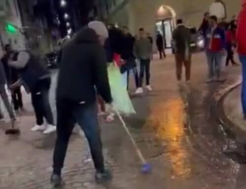 صور وفيديو | علي غرار الجمهور الياباني.. المغاربة ينظفون أماكن إحتفالاتهم بإيطاليا