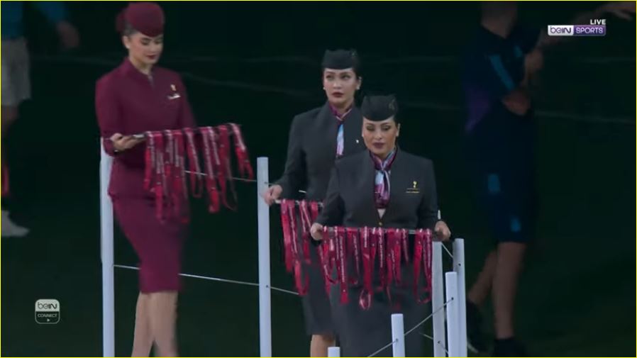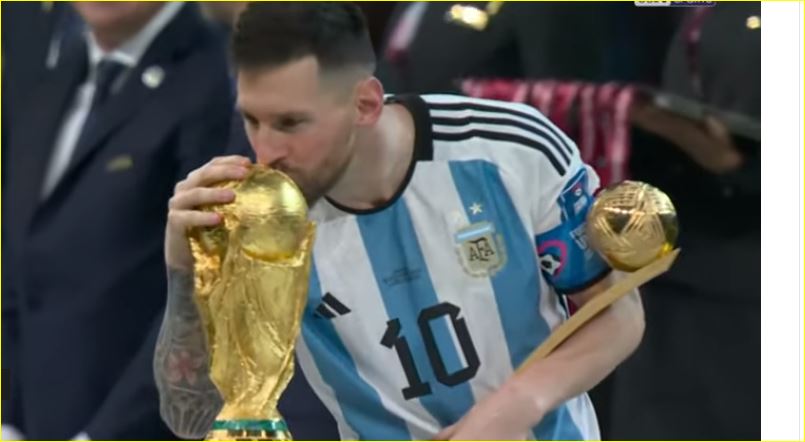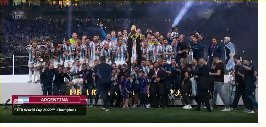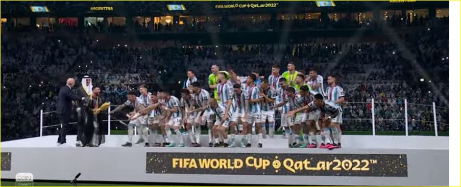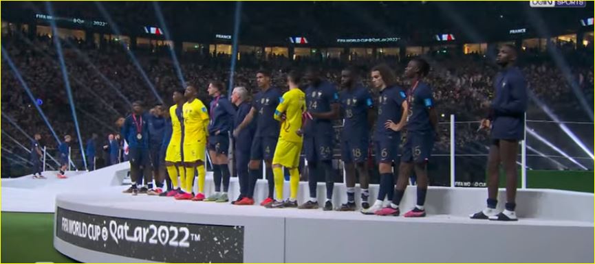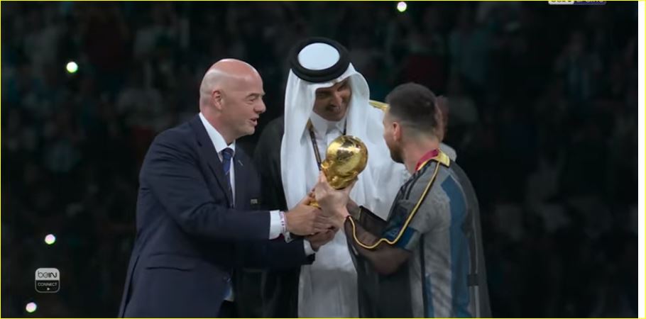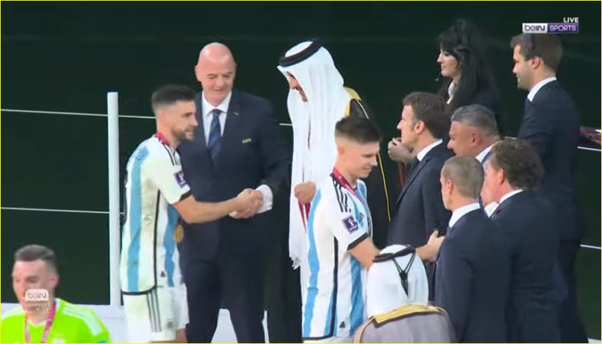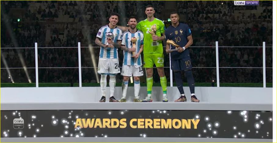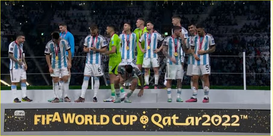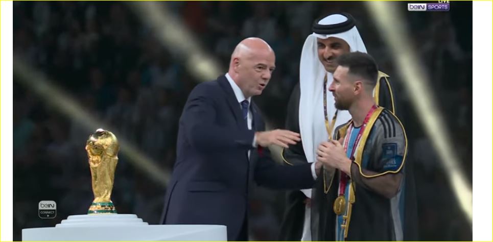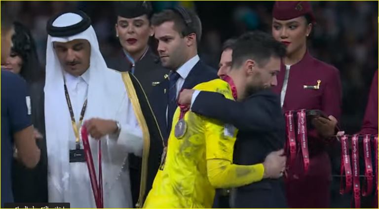 وقام رئيس الاتحاد الدولى لكرة القدم أنفنتينى، وأمير قطر تميم بن حمد والرئيس الفرنسى ماكرون بتسليم ميديليات المركزين الثانى للمنتخب الفرنسى، والأول للمنتخب الأرجنتينى، ورفع ميسى الكأس الأول له قبل أن يعتزل الكرة، أو اللعب الدولى، ليتوج بكأس العالم، وأحسن لاعب فى البطولة.