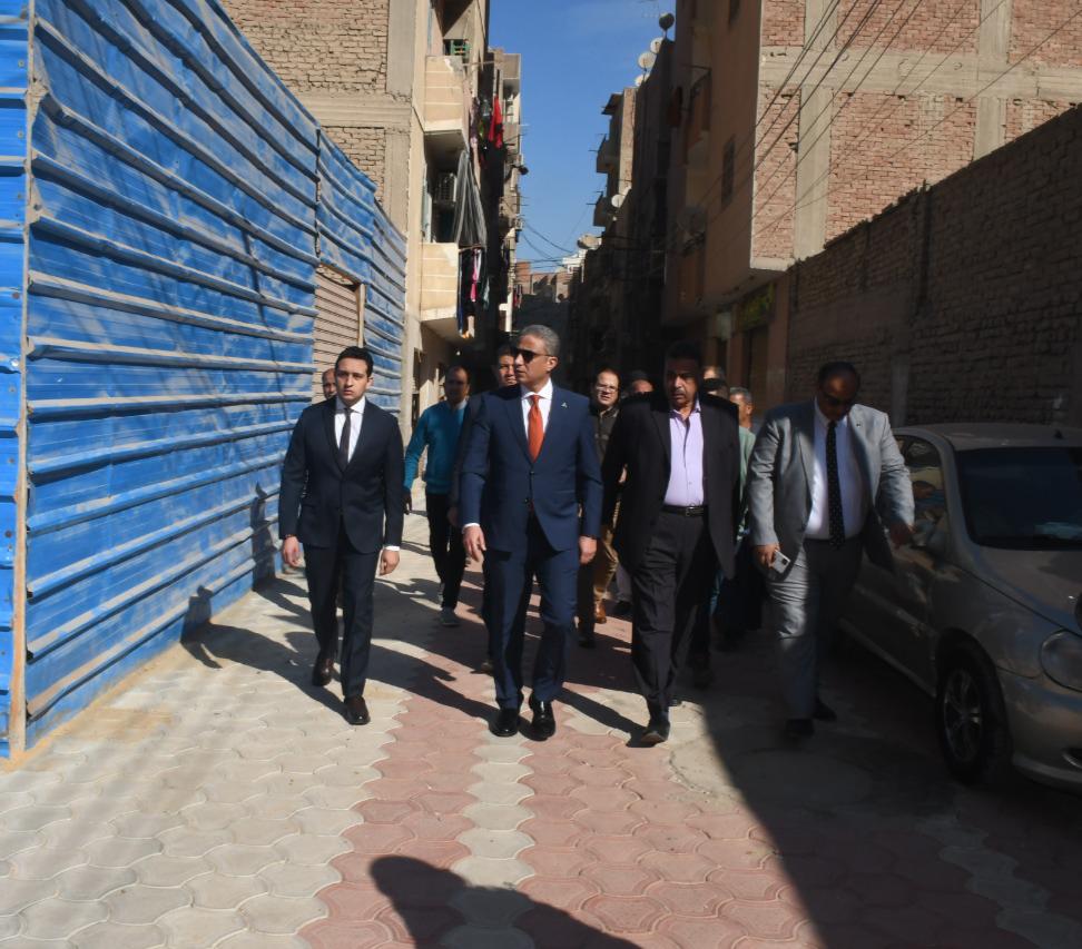 محافظ الفيوم يتفقد أعمال تركيب الأنترلوك بشوارع منطقة الحادقة | صور