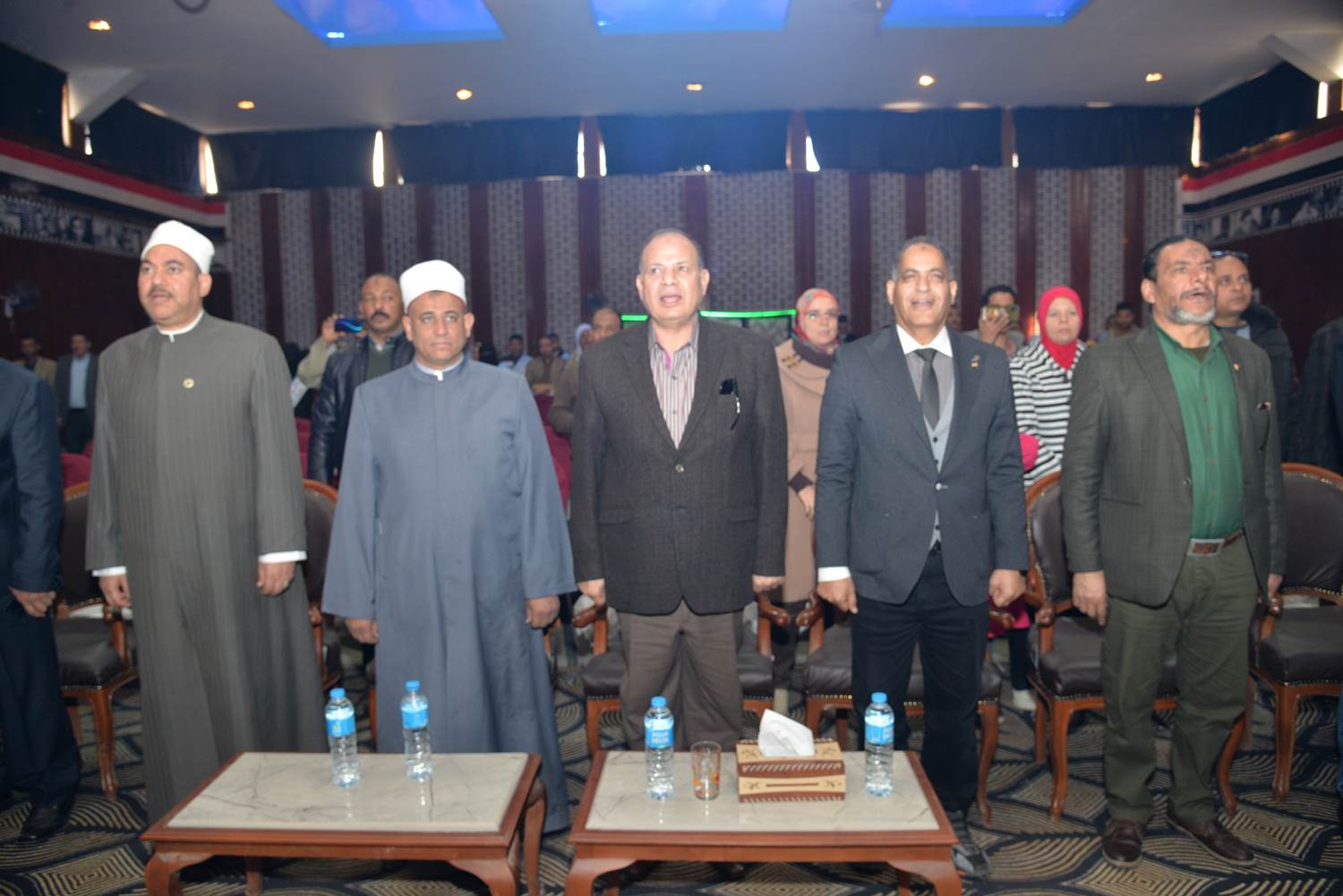 وبدأت فاعليات الحفل بالسلام الجمهوري ثم تلاوة آيات من الذكر الحكيم تلاها ابتهالات وتواشيح دينية ثم كلمات للمحافظ ووكيل وزارة التربية والتعليم تلاها تسليم الجوائز (شهادات تقدير ، والمصحف الشريف ، وجائزة مالية) على 140 طالب وطالبة فائزين بالمسابقة التي شملت (أجمل صوت تجويد ، وأحسن صوت آذان ، واحسن صوت ابتهالات وتواشيح دينية).
