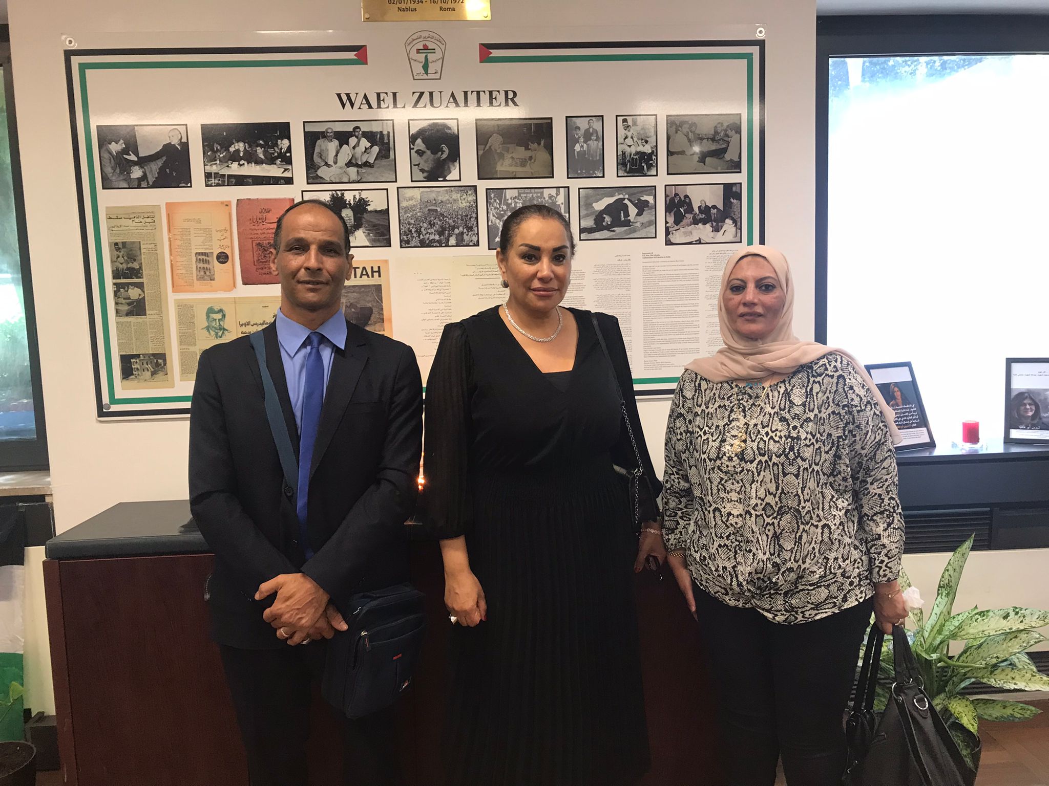 وشهد اليوم الأول للعزاء توافد كبير من وفود المعزيين من مختلف الجاليات العربية في روما وممثلين عن السفارات العربية المختلفة و علي رأسهم سفيرة جامعة الدول العربية في إيطاليا السيدة إيناس مكاوي التي حرصت علي الحضور بنفسها لتقديم واجب العزاء مؤكدة على الدعم و التضامن للشعب الفلسطيني.