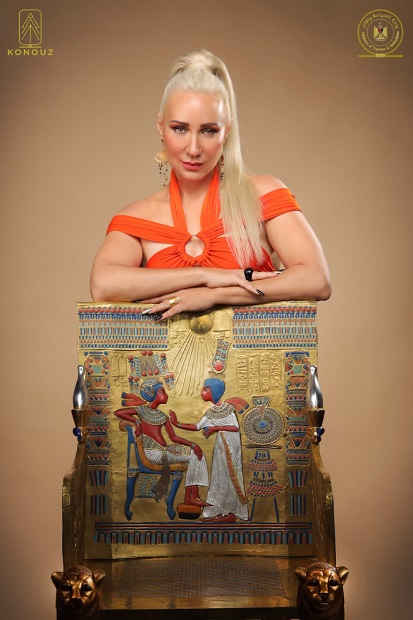 بالصور: مغنية أمريكية فى جلسة تصوير مع كنوز الملك فى حملة ترويجية للسياحة