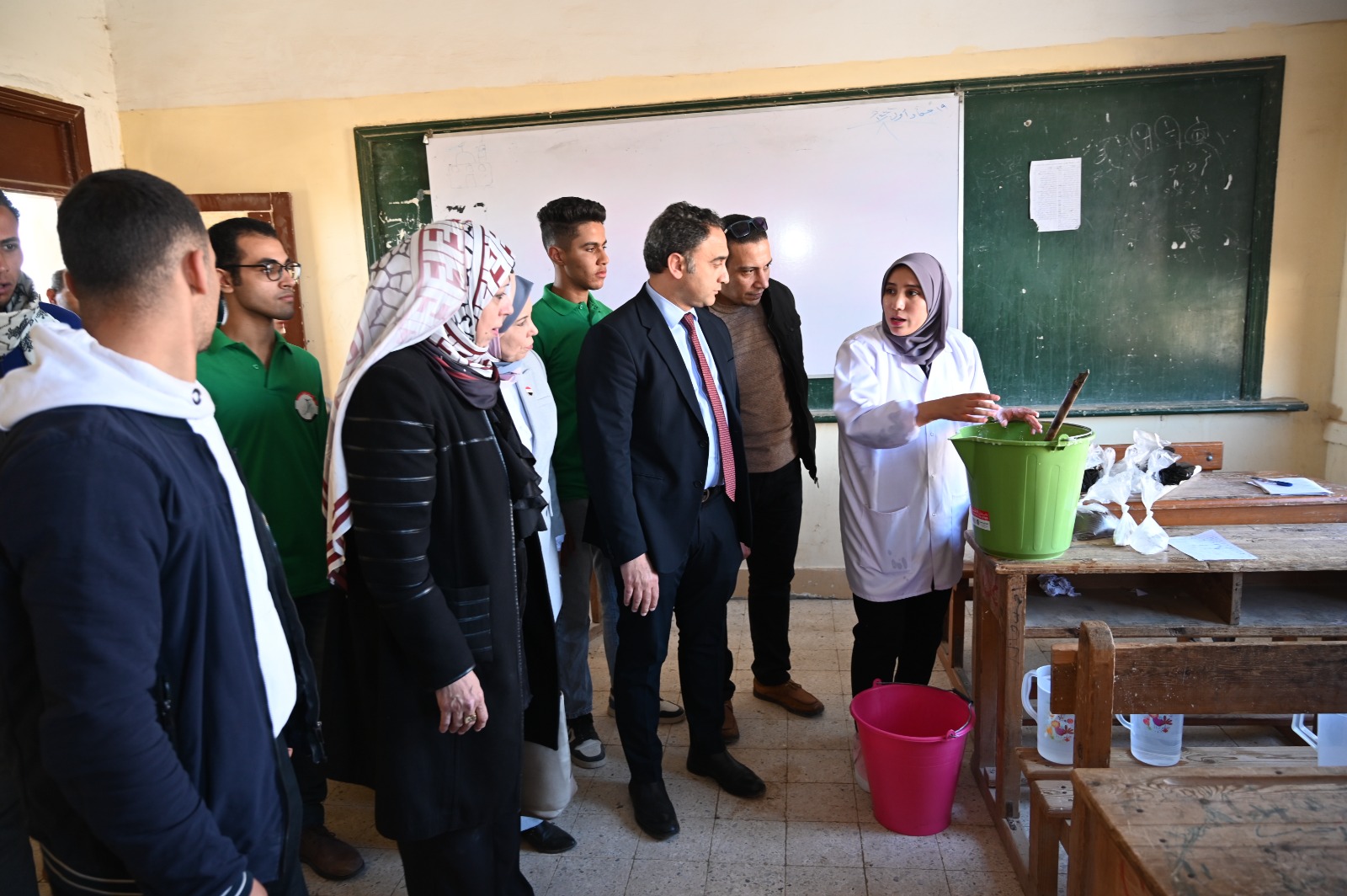 وتفقد أ.د. العيسوي أعمال مشروع (التنور المجتمعي) في القافلة التنموية الشاملة، حيث قام المشروع بعقد عدد ٦ ندوات لتوعية أهالي القرية بقضايا التنمية الأسرية وتعليم الكبار وتنمية المجتمع ومخاطر الأمية، كما تم عقد ٨ فصول امتحانات فورية بالتعاون مع الهيئة العامة لمحو الأمية والتنسيق بين طلاب الجامعة وعدد ١٢٩ أمي راغب في التعلم من أهالي قرية قصر الجبالي، كما قام فريق المشروع بتوعية التطفال وأهاليهم المتسربين من التعليم لتجفيف منابع الأمية.