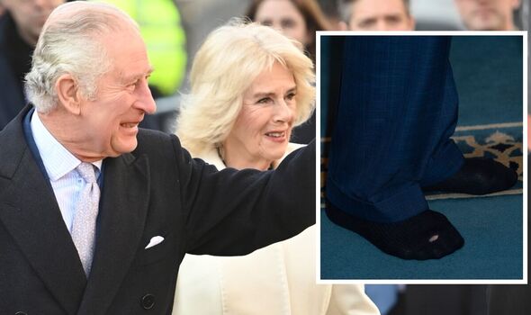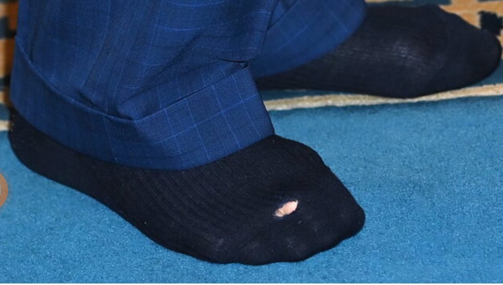 وسرعان ما تم بث الصورة، ونشرها ومشاركتها على وسائل التواصل الاجتماعي بالسخرية من جورب الملك المثقوب.