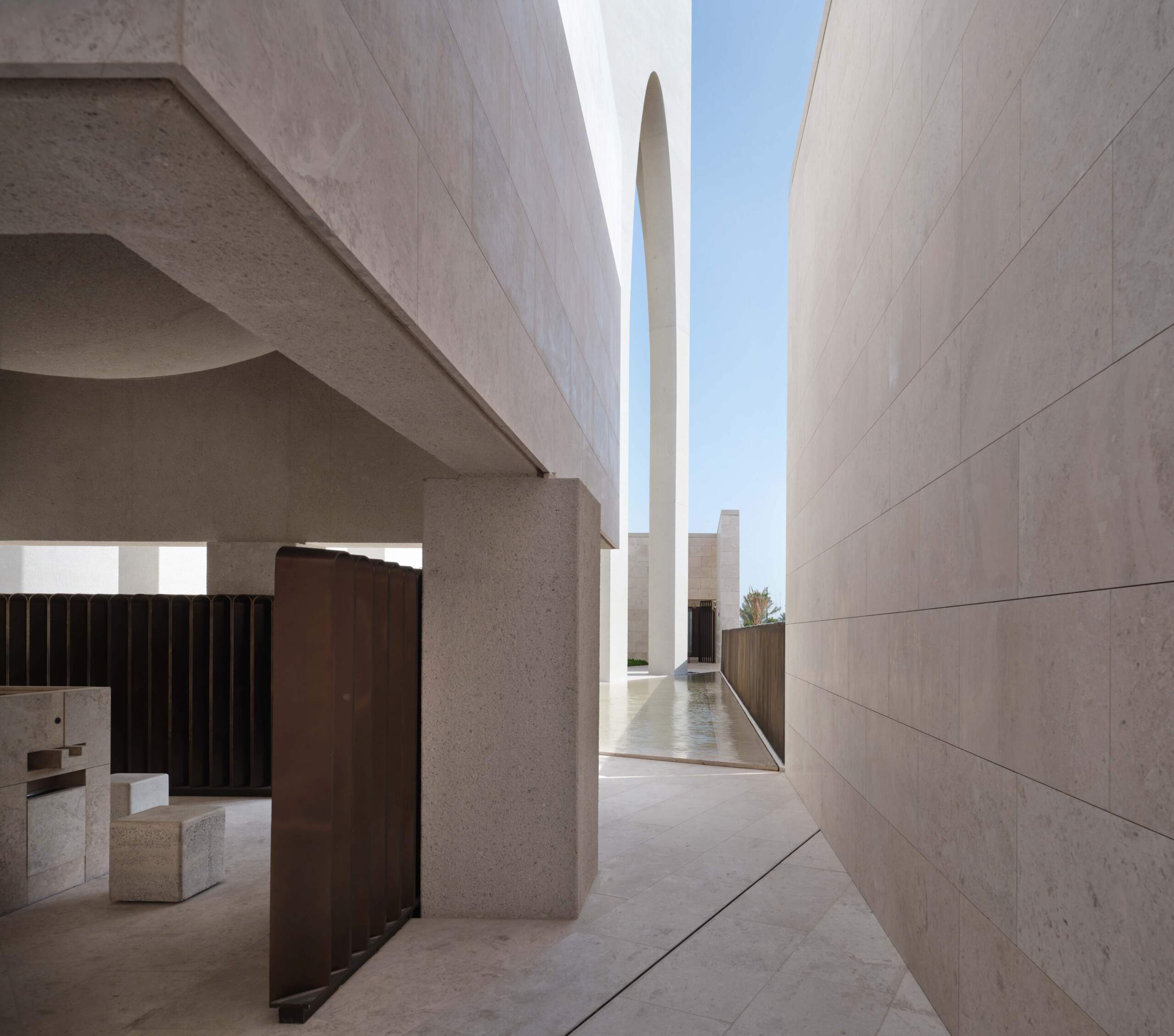 ويحتوي كل من دور العبادة المكعبة الشكل في المجمع الذي تبلغ مساحته 6500 متر مربع على فناء به خاصية مائية ومساحات ملحقة خاصة بتقاليدهم وممارساتهم الدينية. ترتبط المنازل بحديقة مرتفعة.