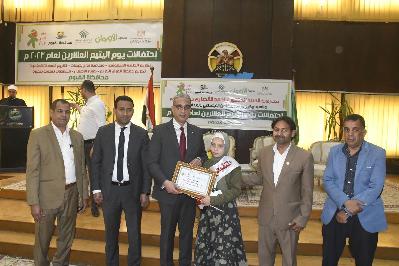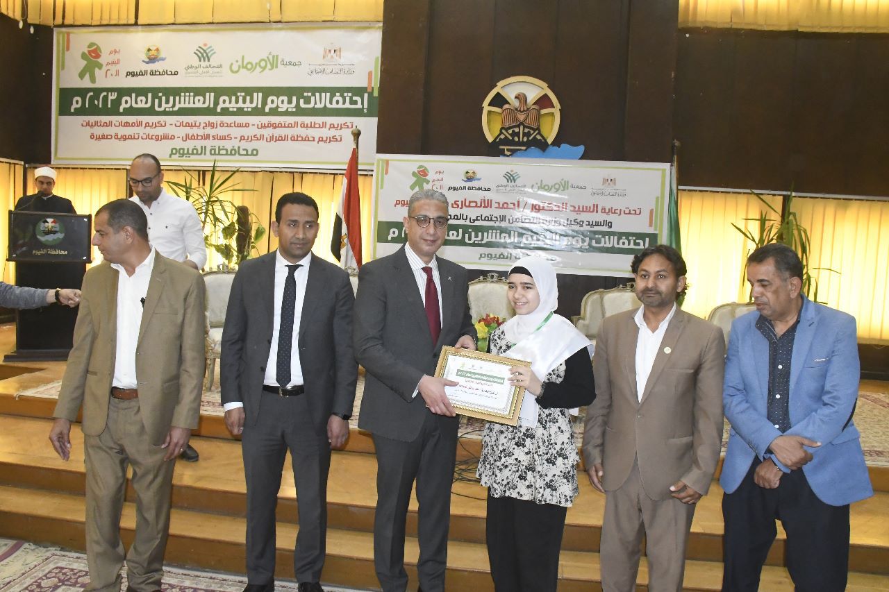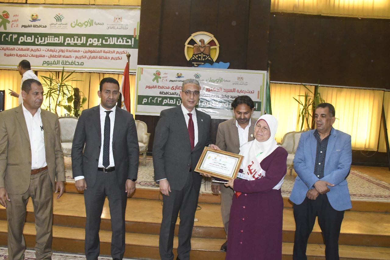 قام الدكتور أحمد الانصاري محافظ الفيوم، بتكريم حفظة القرآن الكريم وأماً مثالية، وذلك خلال احتفالية فرع جمعية الأورمان بالفيوم، بيوم اليتيم، بالقاعة الكبري بديوان عام المحافظة.