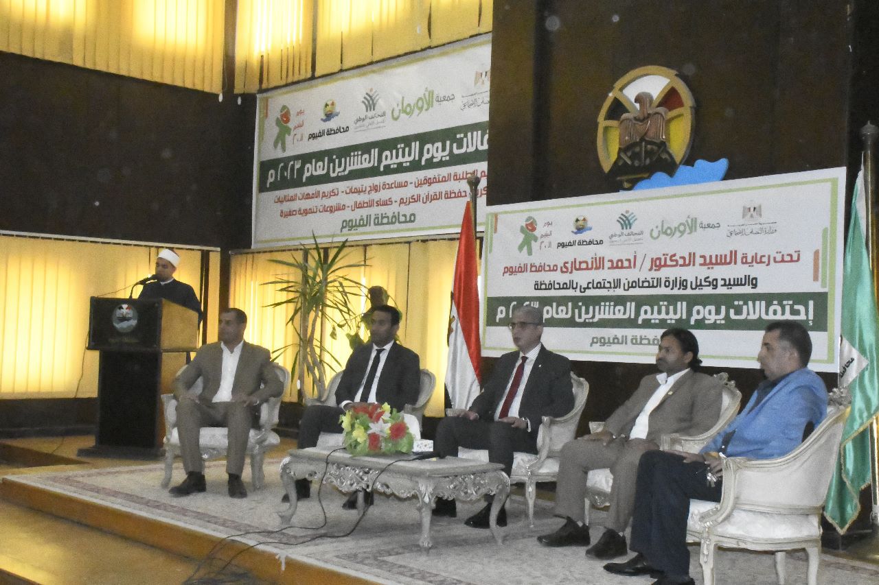 وخلال كلمته بالاحتفالية، قدّم محافظ الفيوم، التهنئة لجميع الحضور بحلول عيد الفطر المبارك، كما رحب بأبنائه وبناته الأطفال المتفوقين علمياً من المكرمين، وإحدى الأمهات المثاليات، وكذا الفتيات المقبلات على الزواج، مثمناً دور مسئولي جمعية الأورمان بالفيوم، لصدق دعمهم ومساندتهم الدائمة لكل فئات المجتمع، ومشاركتهم الفاعلة بمختلف الفعاليات الخدمية والتنموية على أرض المحافظة، بالتنسيق مع مديرية التضامن الاجتماعي.