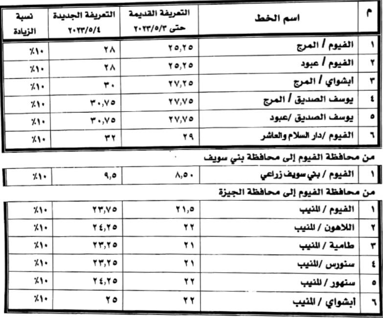 وقال محافظ الفيوم، أن اللجنة التى تم تشكيلها لتعديل التعريفة، قد وضعت فى اعتبارها مسافة كل خط سير، وعدد الرحلات، تحقيقاً للعدالة، كما تم التنسيق مع المحافظات المجاورة التى ترتبط مع المحافظة بخطوط سير، لضمان توحيد التعريفة.