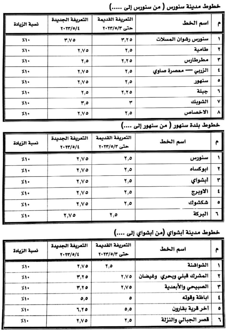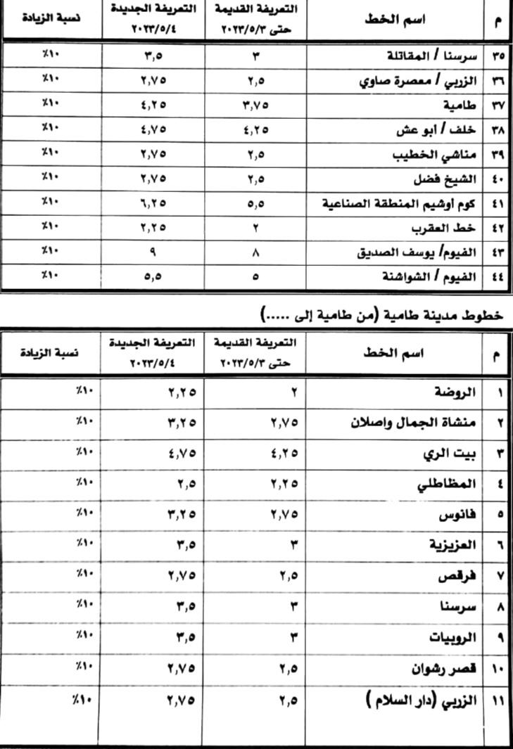 ننشر تعريفة الركوب الجديدة للأجرة والتاكسي فى الفيوم.. والمحافظ يشدد على الالتزام