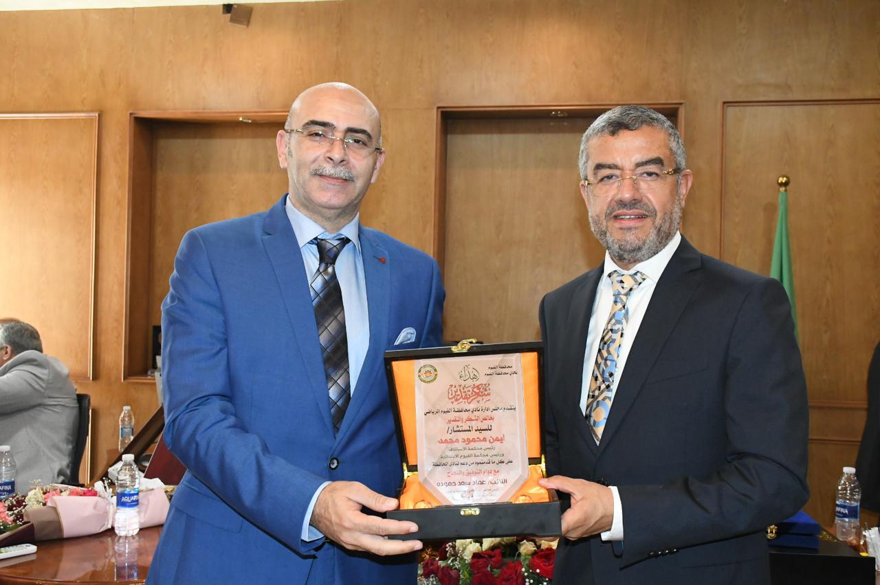 وعلى هامش الافتتاح، سلم رئيس لجنة الإسكان بمجلس النواب، رئيس مجلس نادى محافظة الفيوم، درع النادي لمحافظ الفيوم ونائبه، تقديراً لدورهما فى مساندة النادى والمشاركة بكافة فعالياته، كما سلم درعين آخرين لمساعدي وزير العدل، بجانب تسليم دروع لعددٍ من المستشارين.