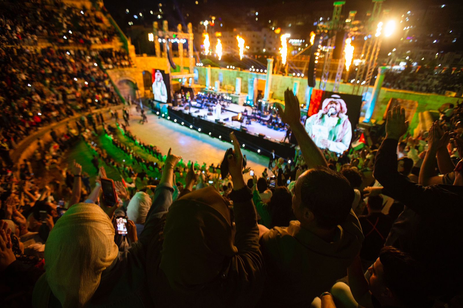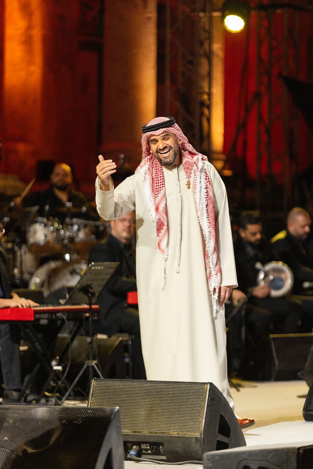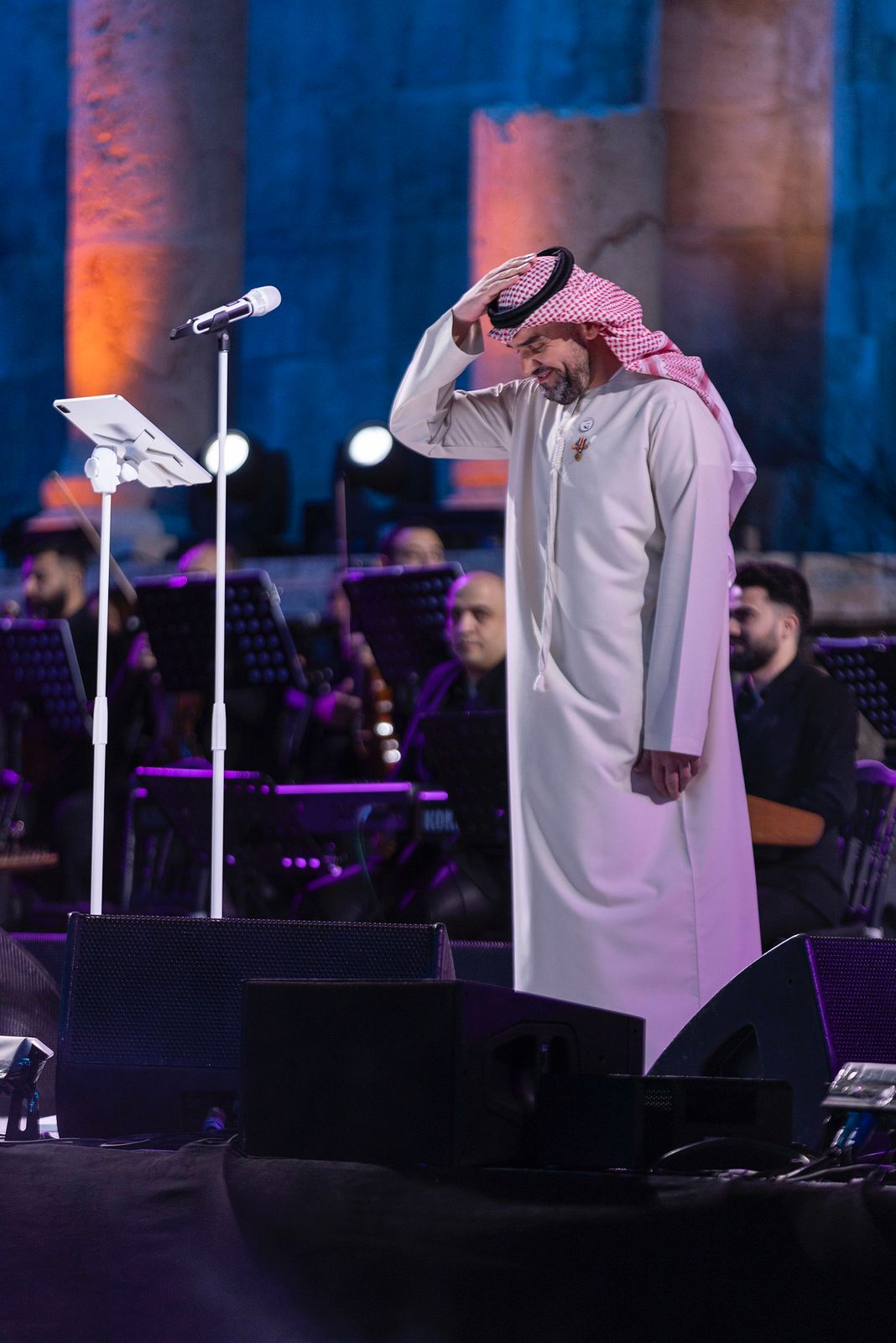 وهنأ الجسمي عند دخوله المدرج الروماني جلالة الملك عبدالله الثاني بن الحسين حفظه الله، وجلالة الملكة رانيا العبدالله، قائلًا: مساء الخير على الأردن والنشامى، سعادتنا كبيرة في الإمارات والوطن العربي بفرحة “الحسين ورجوة”.