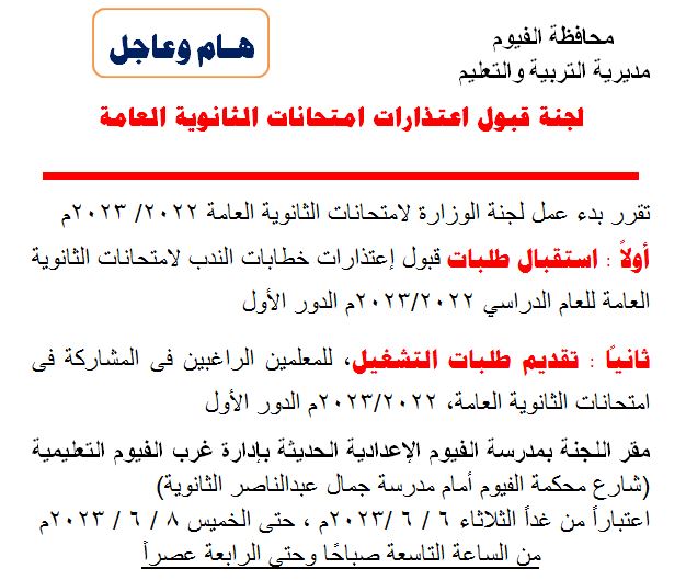 – تعليم الفيوم تنهي استعداداتها لانطلاق امتحانات الدبلومات الفنية 2022 – 2023