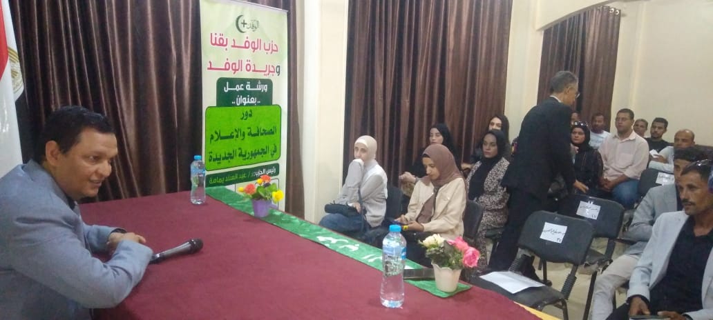 نظمت أمانه حزب الوفد بقنا ورشه عمل بعنوان دور الصحافة والإعلام في الجمهورية الجديدة بحضور كوكبة من الإعلاميين والصحفيين والشخصيات المهتمه بمجال الإعلام ولفيف من أعضاء حزب الوفد بقنا والعديد من التيارات السياسية وأساتذه جامعة جنوب الوادي وشخصيات عامة.