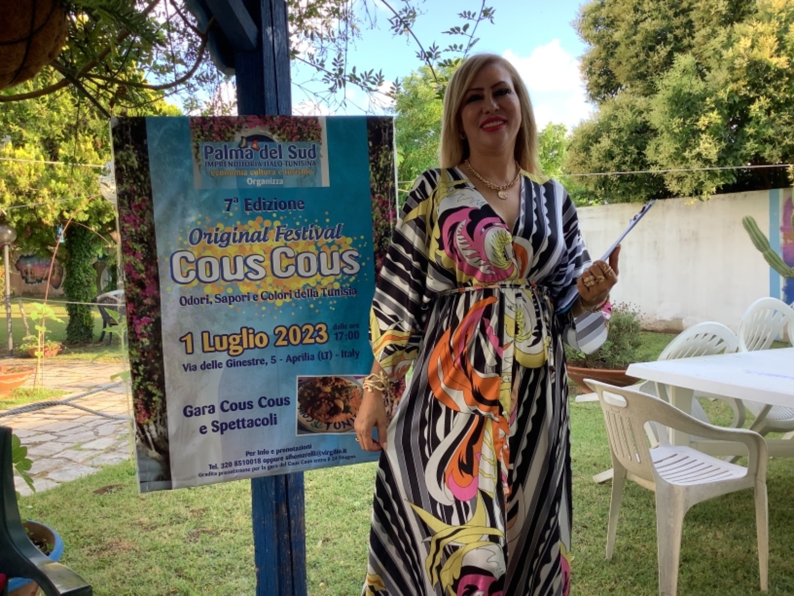وتضطلع بتنظم المهرجان فى كل نسخه، مهاجرة إيطالية من أصل تونسى هى سهام الزرلي الملقبة بـ “ديانا العرب” وهى ناشطة فاعلة فى المجتمع المدنى وسط الجالية العربية بإيطاليا، ومؤسسة ورئيسة جمعية ” La palma di sud Aprilia “.