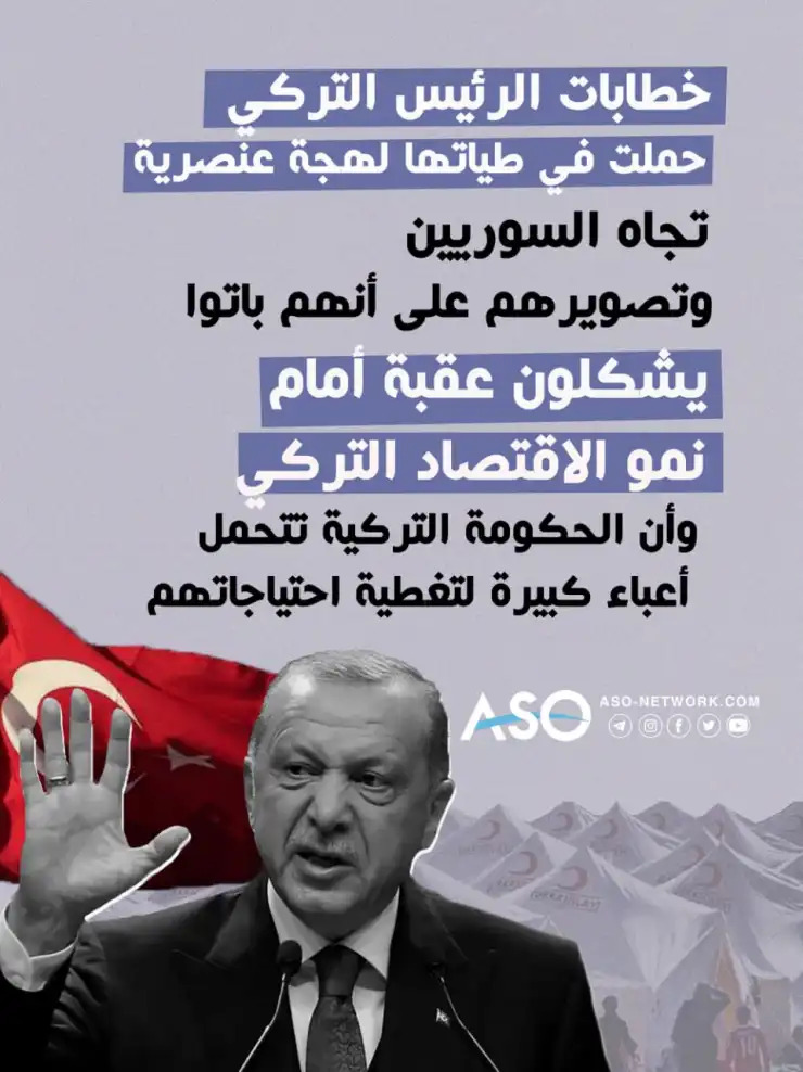 وحذر أردوغان من نشوء قومية سورية كرد فعل على العنصرية والكراهية تجاههم، وهذا ما يترك المجتمعين السوري والتركي في دائرة مغلقة من الخوف والقلق وتهديد السلم الأهلي.