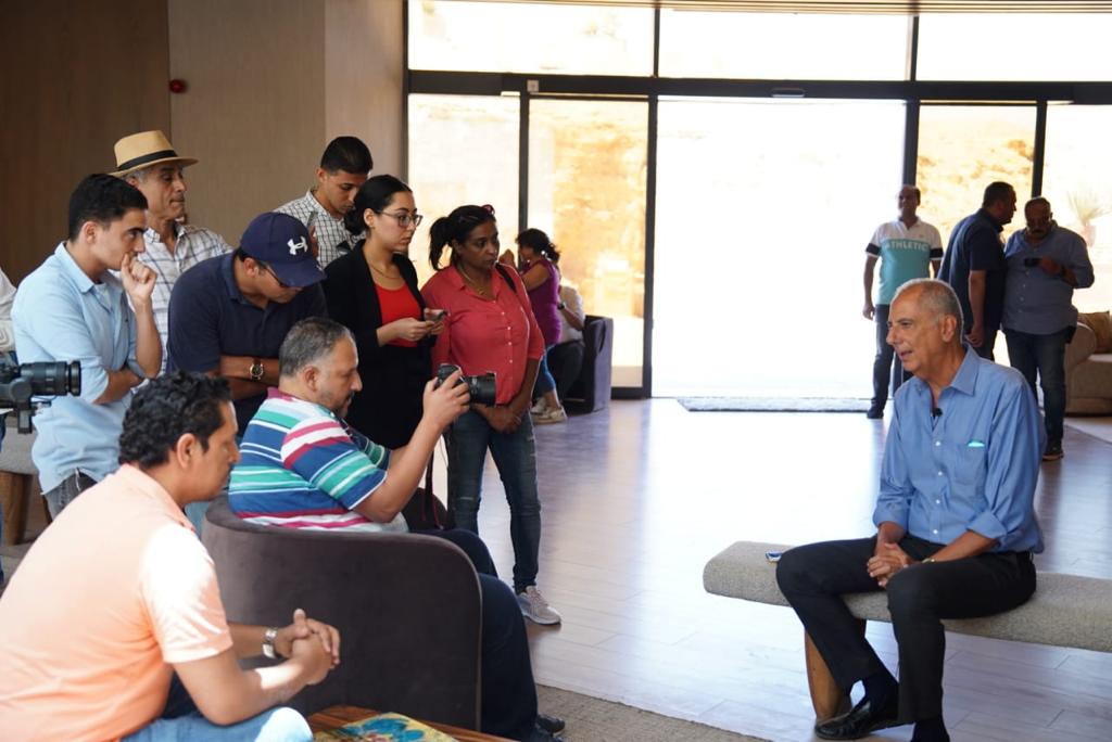 وقام المهندس عمرو جزارين، رئيس مجلس الإدارة التنفيذي لـ “أوراسكوم بيراميدز”، باطلاع الحضور على أحدث مستجدات مشروع منطقة الزيارات بهضبة الأهرامات بالجيزة، وألقى الضوء على جهود الشركة ومسؤوليتها المجتمعية، ودعم الجمعيات الأهلية للأطفال الأيتام وذوي الهمم بمنطقة نزلة السمان والمناطق المجاورة لمنطقة هضبة الأهرامات بالجيزة.