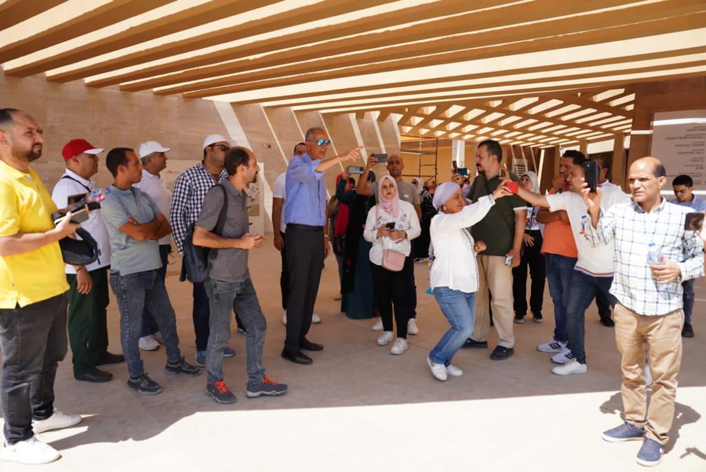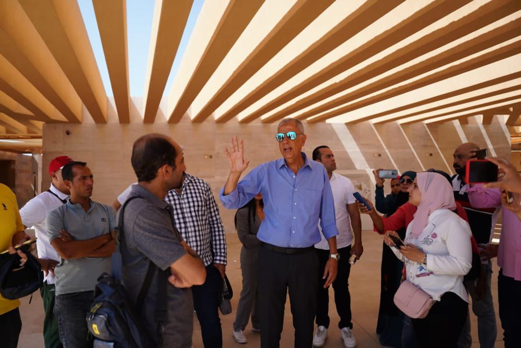 واشار إلى أن المبنى يدعو إلى الفخر كونه سيصبح واحدًا من أفضل مراكز استقبال السائحين بالمناطق الأثرية على مستوى العالم، وأكد أن الهدف من المبنى هو تجهيز السائح لزيارة منطقة الأهرامات، لافتا إلى أن المبنى يضم قصصًا للملوك معلقة على الحوائط، وجداريات تتضمن شرحا وافيا للمنطقة، فضلا عن دور سينما لعرض فيلما وثائقيا للسائحين عن قصة بناء الأهرامات بصوت عالم الآثار المصري دكتور زاهي حواس، والممثل العالمي كيفن كوستنر، وهو الأمر الذي يقدم نبذة عن الحضارة المصرية ومنطقة الأهرامات بشكل أكثر من رائع.