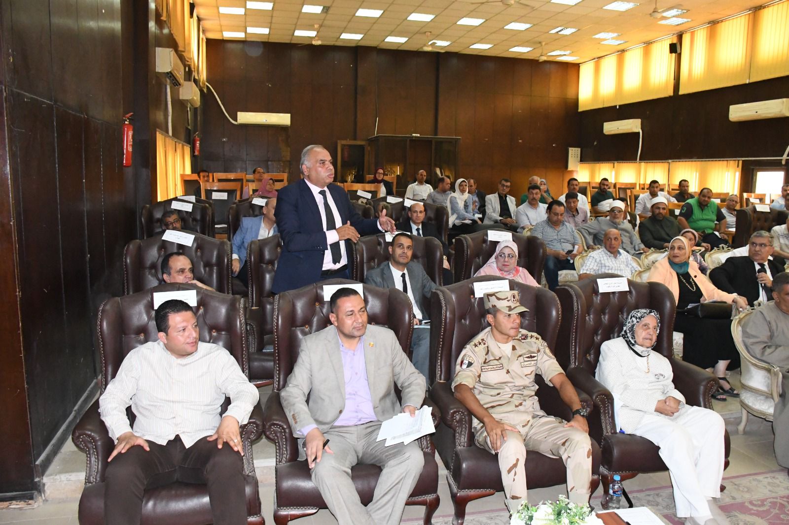 في بداية الاجتماع، قدم محافظ الفيوم تهنئته لجميع الحضور بمناسبة العام الهجري الجديد، وذكرى يوم عاشوراء، كما قدم التهنئة – نيابة عن المجلس التنفيذي – للسيد اللواء ثروت المحلاوي مدير أمن الفيوم، على تجديد الثقة واستمراره مديراً لأمن الفيوم، بعد صدور حركة التنقلات الأخيرة لوزارة الداخلية، معرباً عن تهنئته لجميع الذين حصلوا على الترقية في حركة الشرطة.