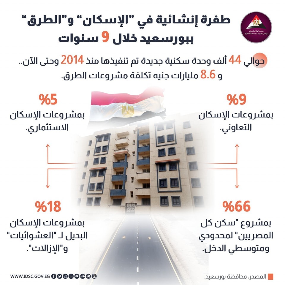 جاء ذلك فى اللقاء الذى أجراه محافظ بورسعيد، مع مركز المعلومات ودعم اتخاذ القرار بمجلس الوزراء، والذى نشر عددًا من الفيديوهات على صفحاته المختلفة بمواقع التواصل الاجتماعي، حول اللقاء الذى تناول أبرز جهود الدولة لتحسين الخدمات المقدمة إلى أهالي المحافظة بجانب دعم أنشطتها في شتى القطاعات الإنتاجية.