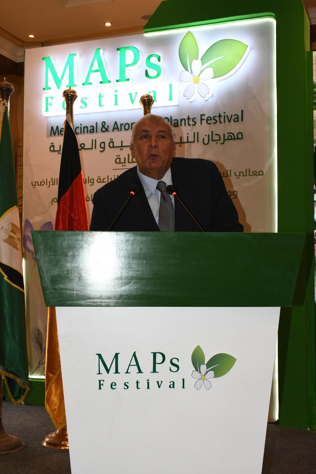 في كلمته، أعرب محافظ الفيوم، عن ترحيبه بجميع ضيوف المحافظة، وكافة المشاركين في المؤتمر الثاني للنباتات الطبية والعطرية، مثمناً دور الوكالة الألمانية في تنظيم هذا المهرجان، كما قدم الشكر لجميع الهيئات والمؤسسات والمعاهد والمراكز البحثية وكافة المشاركين بالمهرجان، متمنياً خروجه بنتائج وتوصيات تعود بالنفع والفائدة على كافة المشتغلين بمجال النباتات الطبية والعطرية.