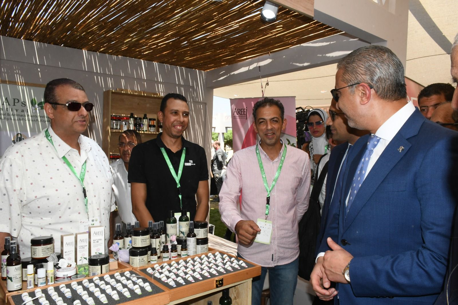 شهد الفعاليات، الدكتور أحمد الأنصاري، محافظ الفيوم، واللواء محمد الزملوط، محافظ الوادي الجديد، والدكتور عادل عبد العظيم، ممثلاً عن وزارة الزراعة واستصلاح الأراضي، والدكتور محمد عماد، نائب محافظ الفيوم، وبلال حبش، نائب محافظ بني سويف، والدكتور ياسر حتاتة، رئيس جامعة الفيوم، والدكتور طارق الهوبي، رئيس هيئة سلامة الغذاء، واللواء شريف صالح، رئيس هيئة تنمية الصعيد، والنائب عبد الحميد الدمرداش، رئيس المجلس التصديري للحاصلات الزراعية، والمهندس طارق أبوبكر، عضو مجلس إدارة المجلس التصديري للحاصلات الزراعية، رئيس اللجنة التنظيمية للمهرجان، والمهندس على عيسى، رئيس جمعية رجال الأعمال المصريين، والدكتور أمجد القاضي، المدير التنفيذي لمركز تكنولوجيا الصناعات الغذائية والتصنيع الزراعي التابع لوزارة التجارة والصناعة، وميريام فيرناندو، مدير مشروع الابتكار الزراعي التابع للوكالة الألمانية للتعاون الدولي، واللواء عبد الفتاح تمام، سكرتير عام المحافظة، والدكتور سيد خليفة، نقيب الزراعيين، ووكلاء وزارات الزراعة بمحافظات الفيوم وبني سويف والمنيا، وخبراء زراعة وإنتاج النباتات الطبية والعطرية، وممثلي المؤسسات العلمية والبحثية والمنظمات والهيئات الدولية، والجمعيات الأهلية ومنظمات المجتمع المدني، والعاملين في مدخلات الإنتاج والتصنيع، والجمعيات التسويقية، والمزارعين، من المحافظات المشاركة.