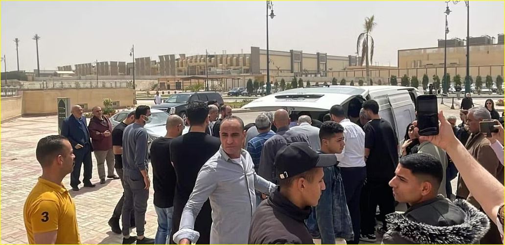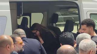 صور: دينا الشربيني تنهار وهى تشيع جثمان أمها