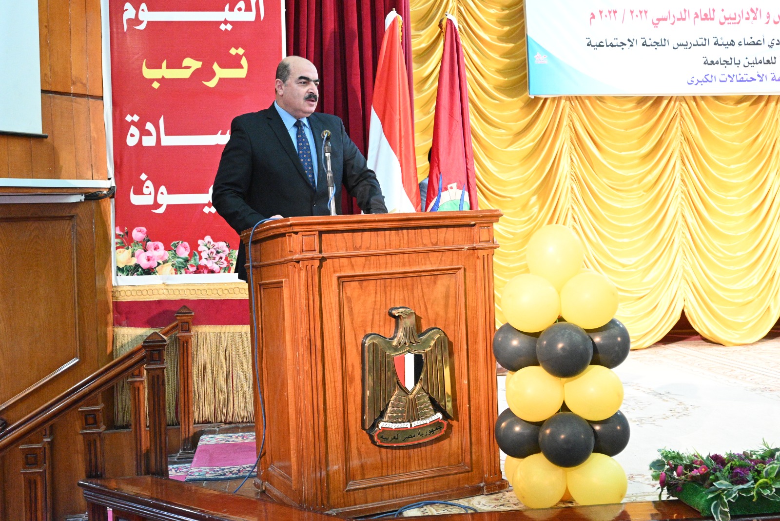 حضر الاحتفال الأستاذ الدكتور محمد فاروق الخبيري نائب رئيس الجامعة لشئون التعليم والطلاب، والأستاذ الدكتور عرفة صبري حسن نائب رئيس الجامعة لشئون الدراسات العليا والبحوث، والأستاذ الدكتور عاصم فؤاد العيسوي نائب رئيس الجامعة لشئون خدمة المجتمع وتنمية البيئة، والأستاذ الدكتور أحمد جابر شديد رئيس جامعة الفيوم السابق، وعمداء الكليات والأستاذ الدكتور نور الرمادي رئيس مجلس إدارة نادي أعضاء هيئة التدريس، وأشرف الغندقلي القائم بأعمال أمين عام الجامعة، وعمرو ماضي أمين الجامعة المساعد للشئون المالية ورئيس مجلس إدارة اللجنة الرياضية، وهالة السويفي مدير عام العلاقات العامة والإعلام، وعبد الناصر بكري رئيس اللجنة النقابية للعاملين بالجامعة.