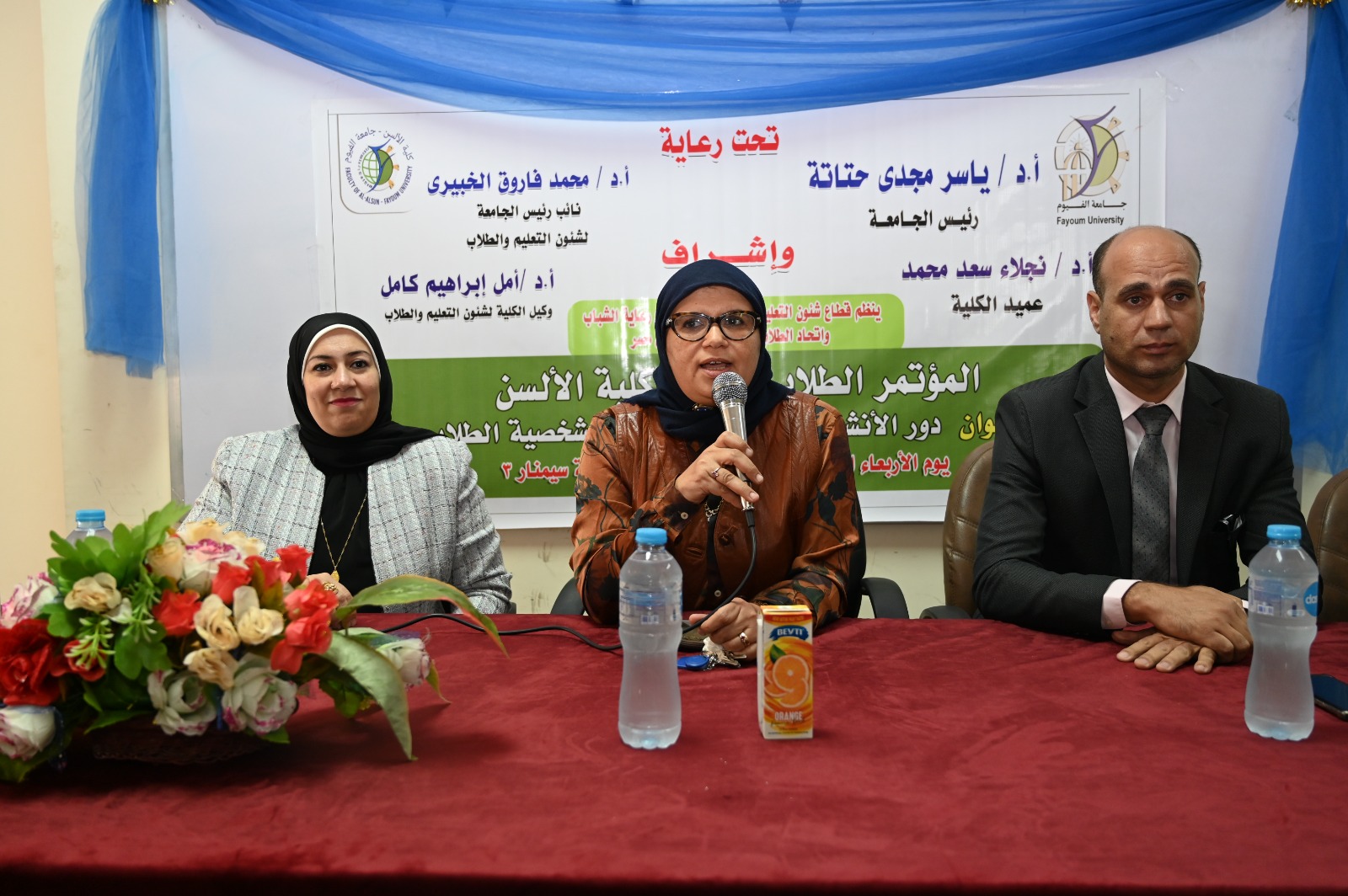 شهدت أ.د نجلاء سعد القائم بأعمال عميد كلية الألسن، المؤتمر الطلابي الأول بالكلية تحت عنوان دور النشاط الطلابي في تنمية شخصية الطالب.