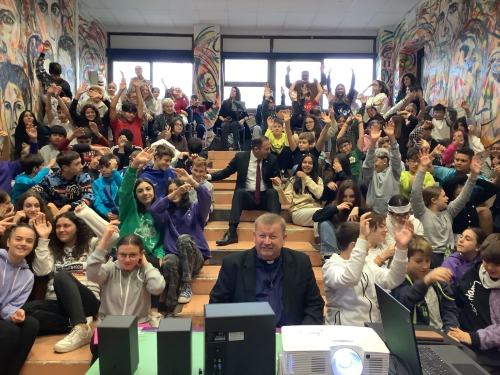 حضر الندوة طلاب المدرسة من المرحلتين الإبتدائية والإعدادية ومسؤولو المدرسة والعاملين فيها وعدد من شخصيات المجتمع المدني الإيطالي وممثلين عن بلدية لاديسبولي وعلى رأسهم مستشارة التعليم والثقافة بالمدينة “مارجريتا فرابا”.