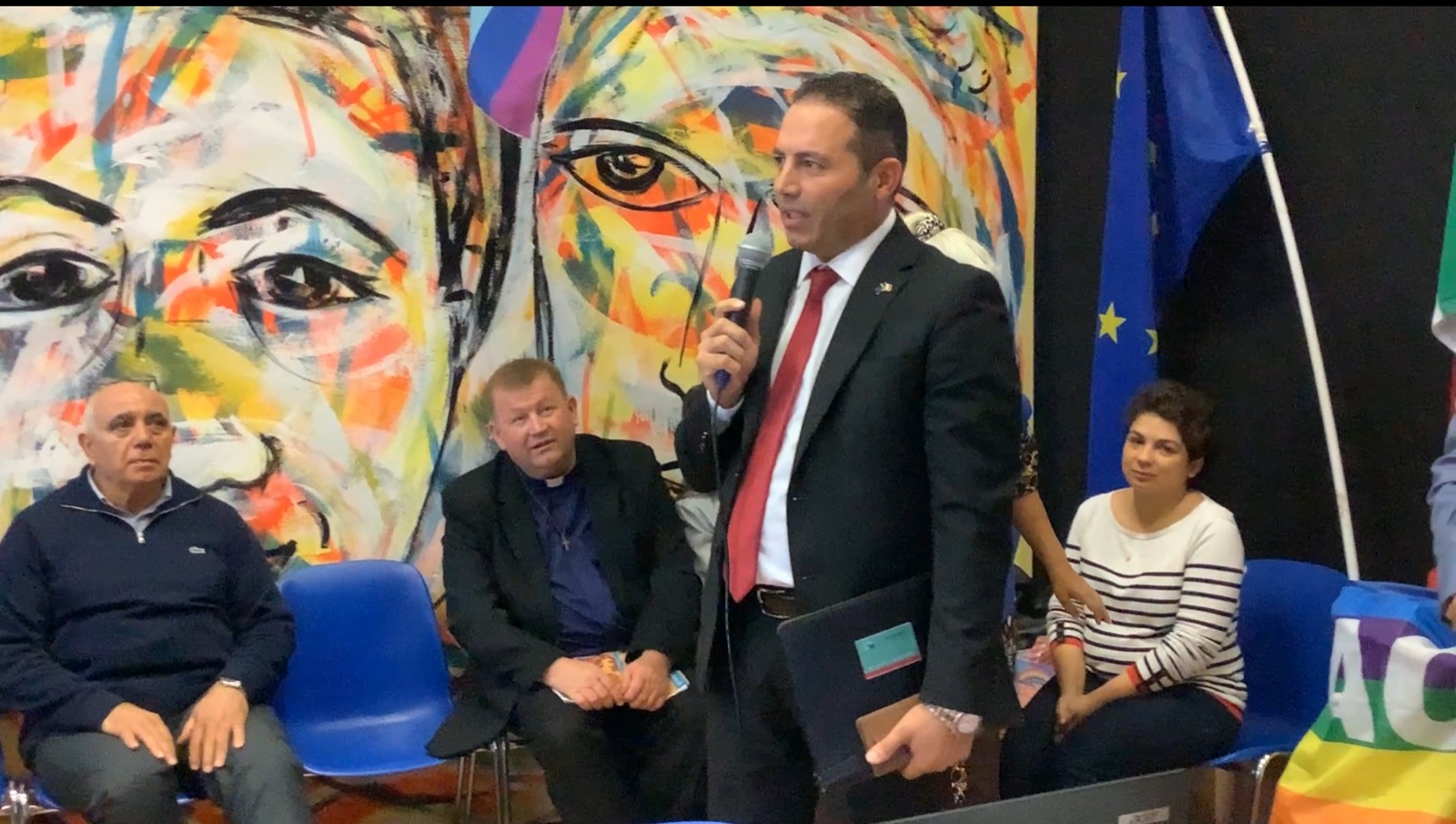 وعلى الأسس السابقة تمت دعوته للحديث أمام طلاب إحدى المدارس بإيطاليا عن الحق في السلام، فجاءت ذات مغزى ومعنى، وقد شاركته “ساندرا بوسيو ” المتطوعة في جمعية أصدقاء إفريقيا من أصول رواندية .