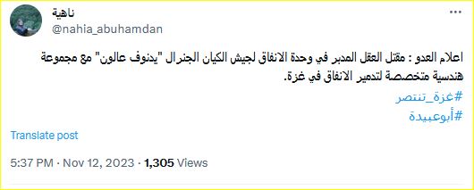 وأضافات حسابات نشطة عبر منصات التواصل وخاصة “إكس وفيسبوك” إن الفصائل الفلسطينية نجت فى نصب كمسن للجنرال عالون وفريقه تحت الأنفاق، وتم قتلهم جميعا.