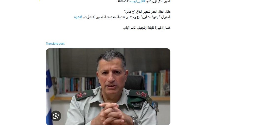 وأعرب رواد “السوشيال” ابتهاجهم بالخبر معتبرين أن مقتل هذا الجنرال خسارة كبيرة للقيادة وللجيش الإسرائيلي، فيما قال أخرون إن الخبر نزل على تل أبيب كالصاعقة.