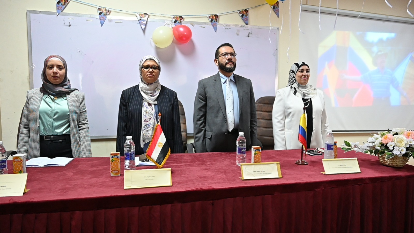 أشارت ا.د نجلاء سعد إلى أن الزيارة تأتي في إطار تدعيم العلاقات الثقافية والأكاديمية، موضحة أن جمهورية كولومبيا تقع في قارة أمريكا الجنوبية، وأنها من ضمن ٢٢ دولة تتحدث بالأسبانية، وأن زيارة كارلوس لكلية الألسن تعتبر من أهم الفرص للتحدث عن الثقافة والحضارة الكولومبية