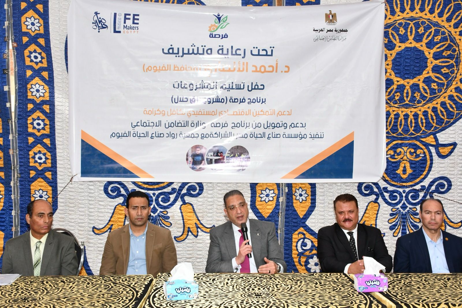 ويأتى هذا تنفيذاً لتوجيهات الرئيس عبدالفتاح السيسي رئيس الجمهورية، بدعم الفئات الأولى بالرعاية، وبالتعاون بين جمعية “رواد صناع الحياة” بالفيوم، التابعة لمؤسسة “صناع الحياة مصر”، وبرنامج “فرصة”، في إطار التنسيق بين المحافظة، ووزارة التضامن الاجتماعي، في المنحة المقدمة من البنك الدولي.