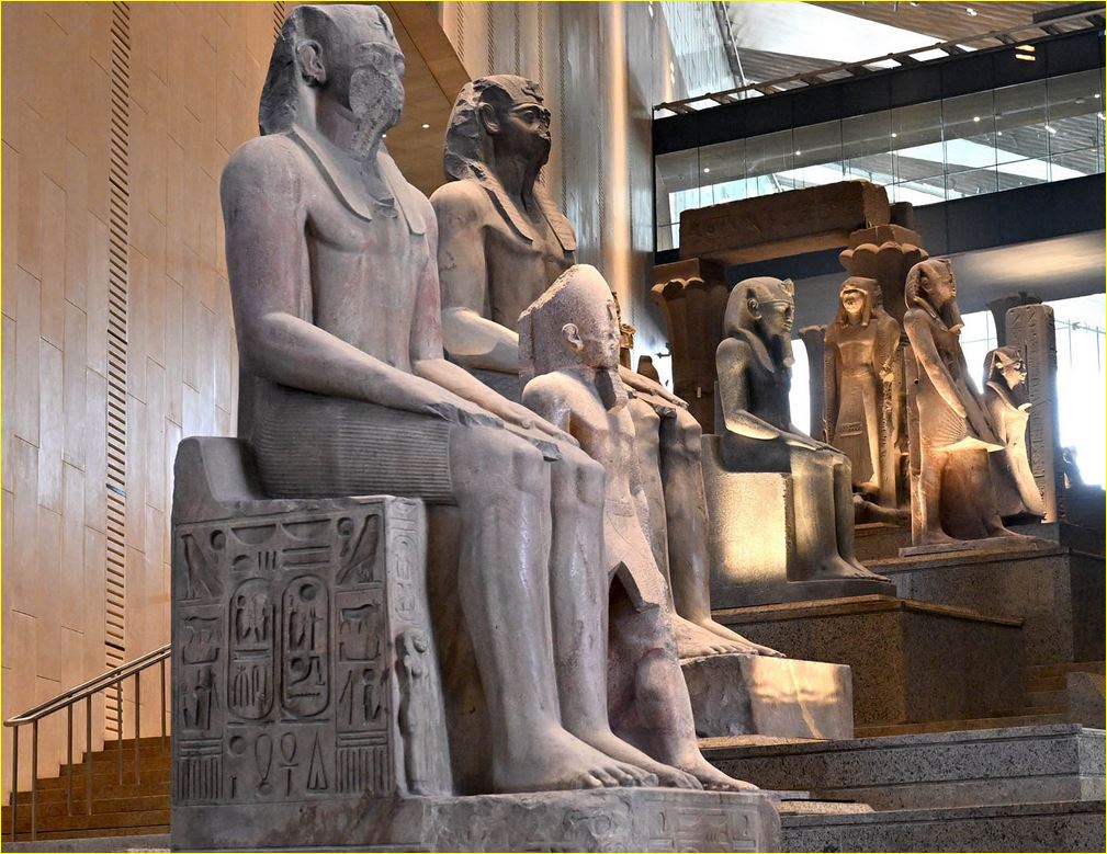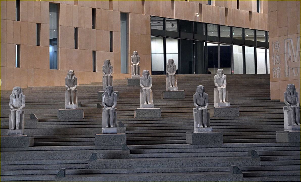 وأوضح الوزير أن الدرج العظيم يعدُ من أكثر الأماكن تفرداً بالمتحف والتي تميزه عن باقي المتاحف العالمية، حيث يُعرض عليه مجموعة من أفضل وأضخم القطع الأثرية التي تجسد روائع فن النحت بمصر القديمة، والتي تبدأ من عصر الدولة القديمة وحتى العصر اليوناني الروماني، وينتهي الدرج العظيم بمشهد بانورامي جميل يُظهر أهرامات الجيزة الخالدة.