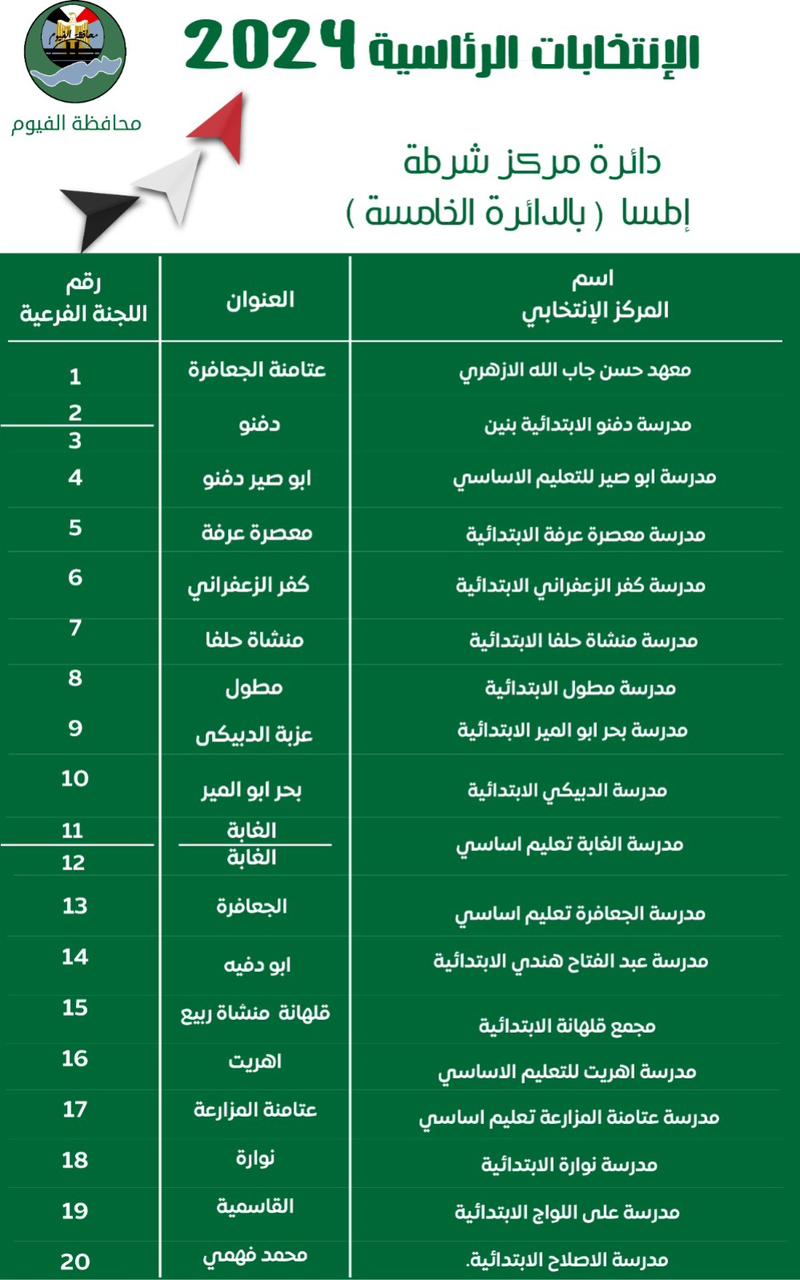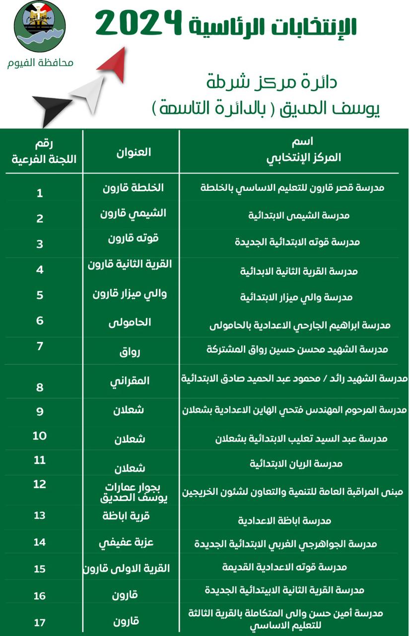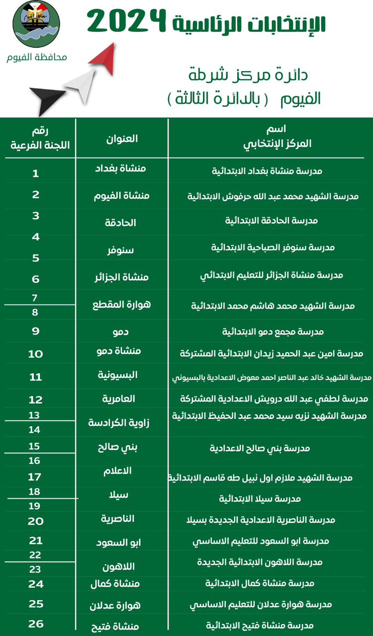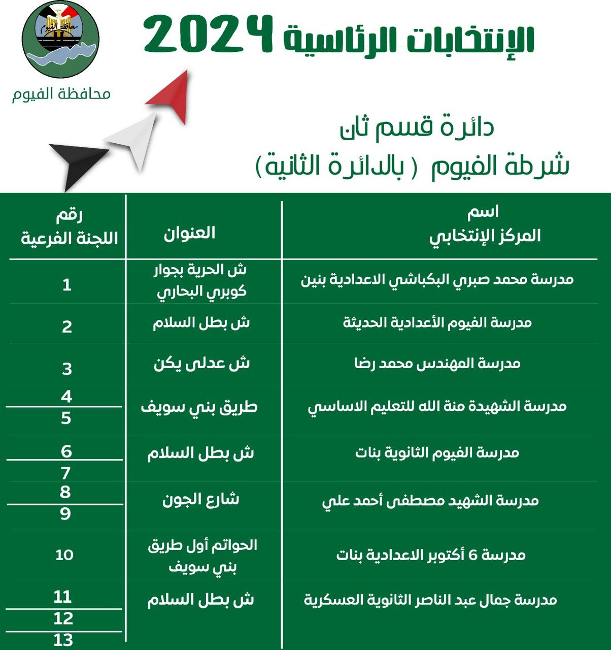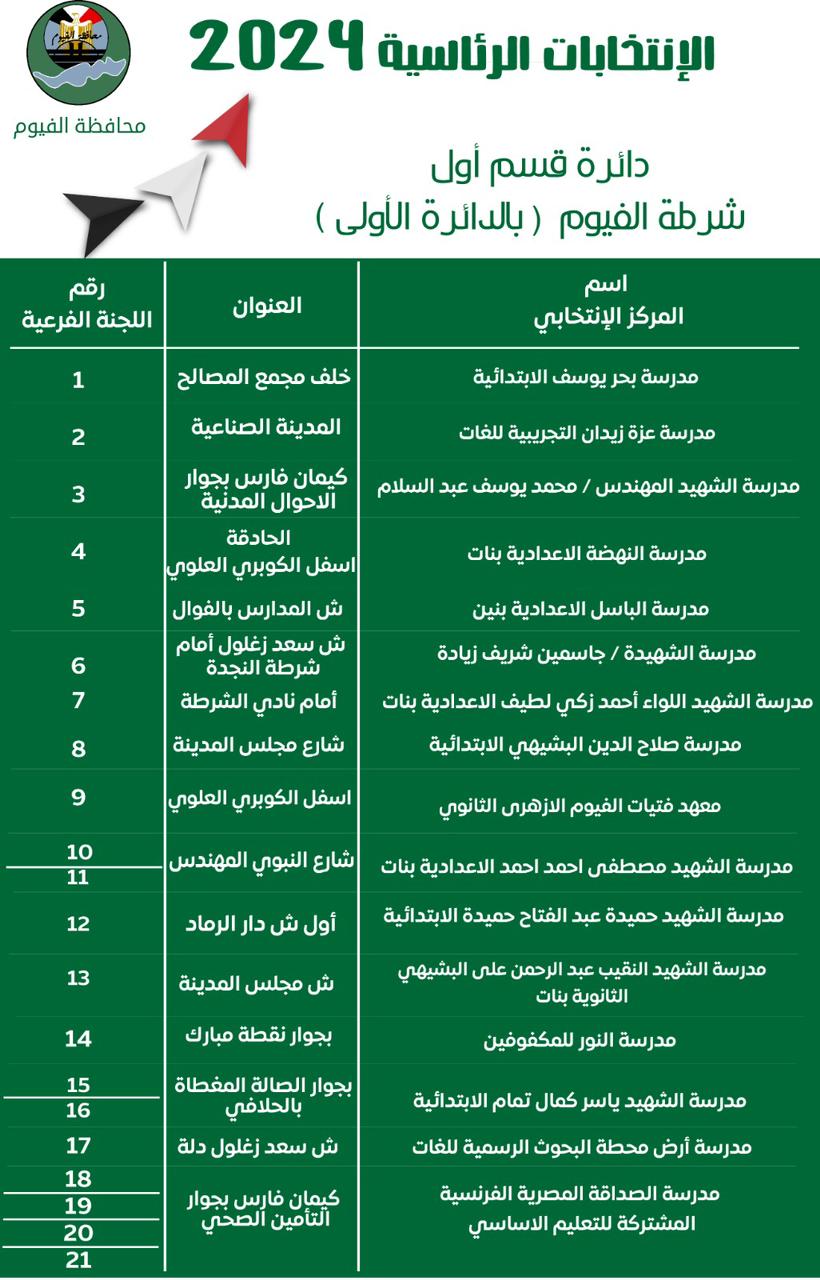 أسماء وعناوين مقار اللجان الانتخابية بمحافظة الفيوم