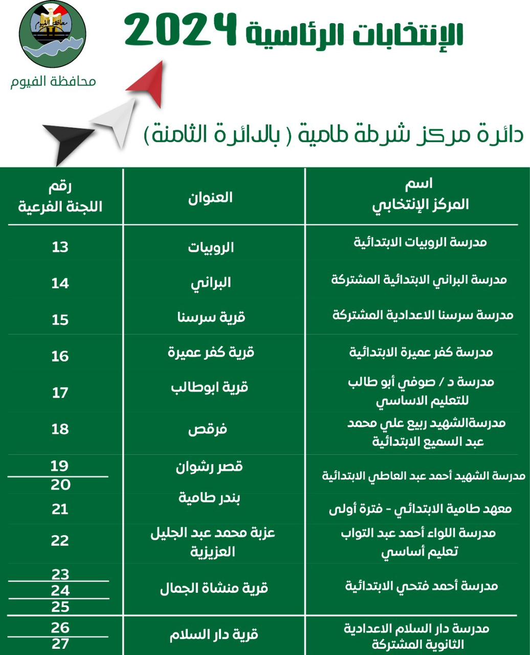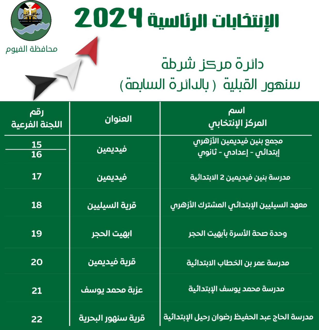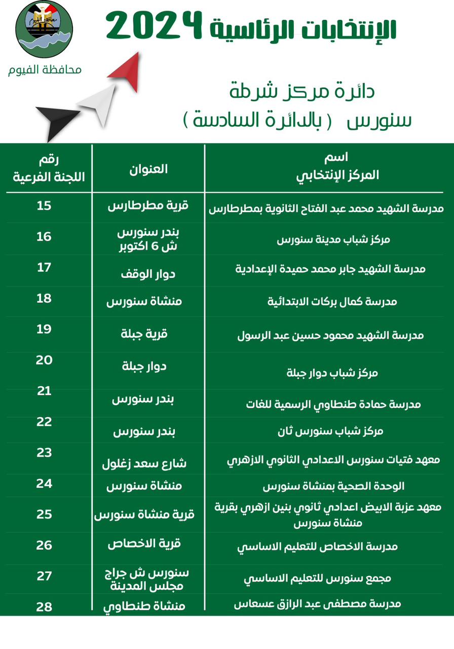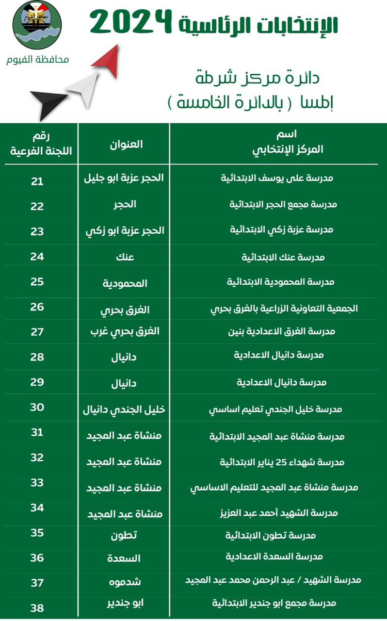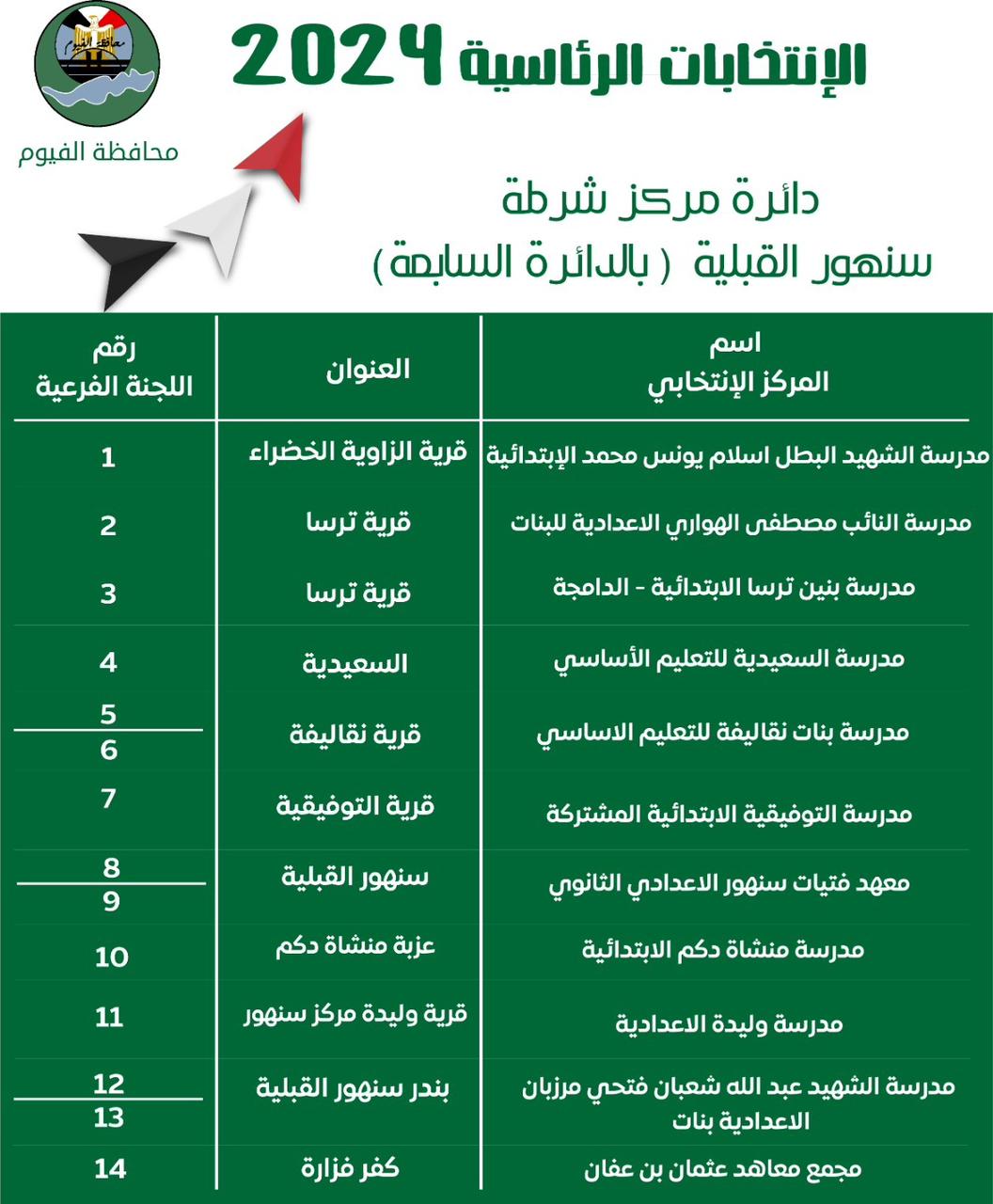 أسماء وعناوين مقار اللجان الانتخابية بمحافظة الفيوم
