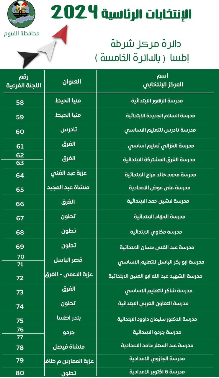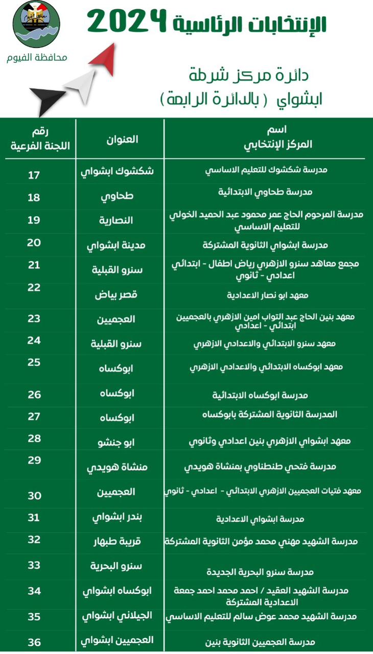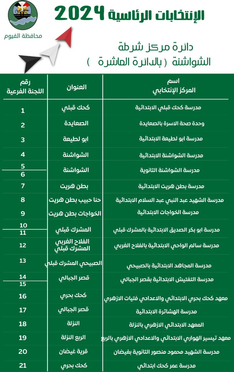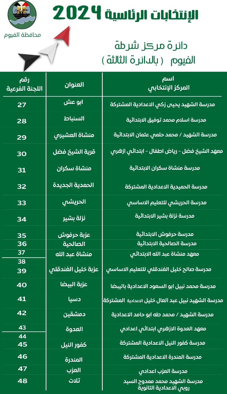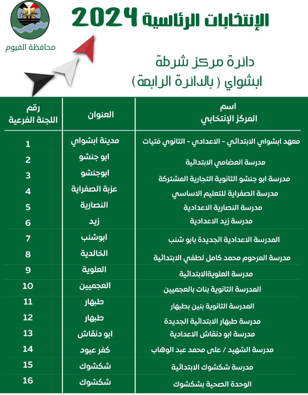 أسماء وعناوين مقار اللجان الانتخابية بمحافظة الفيوم