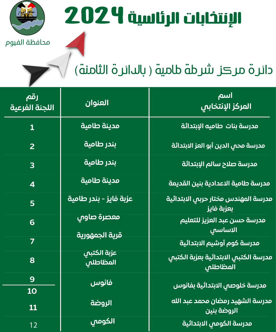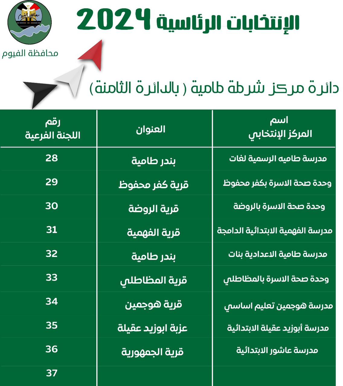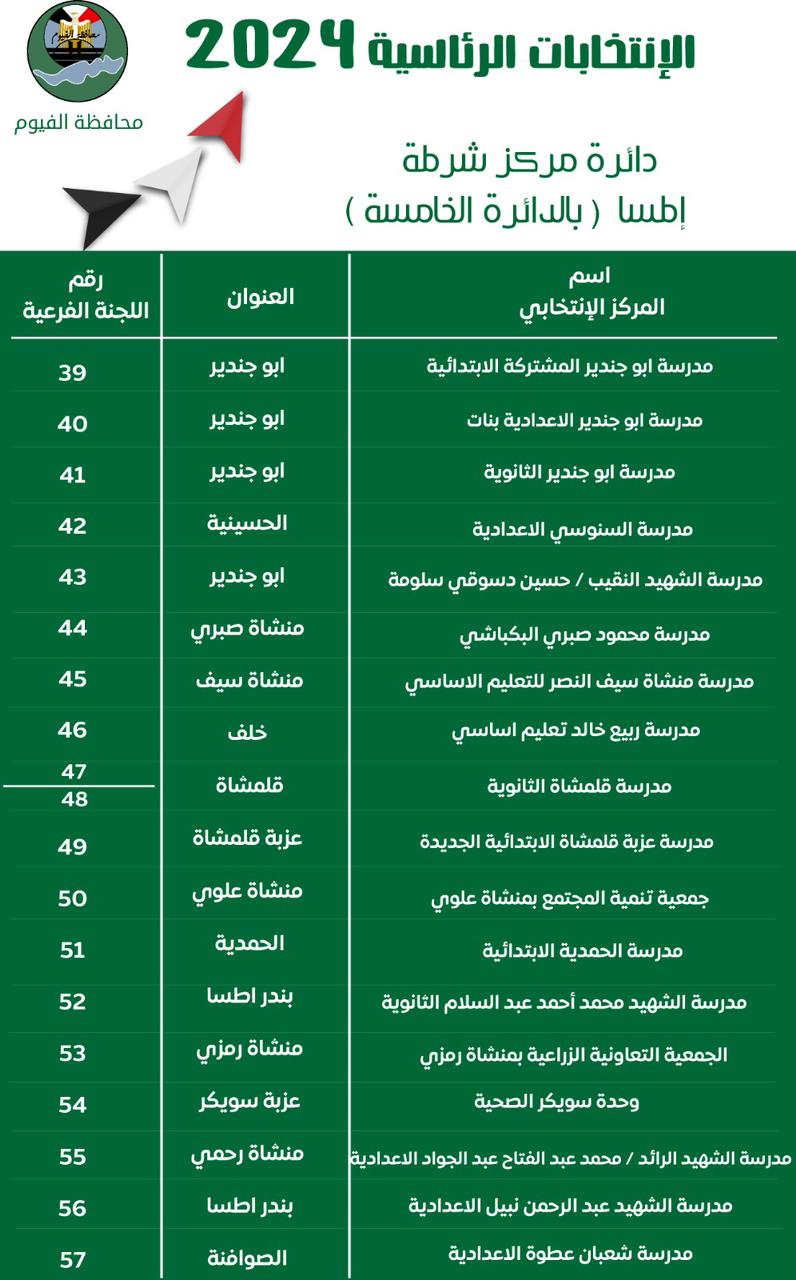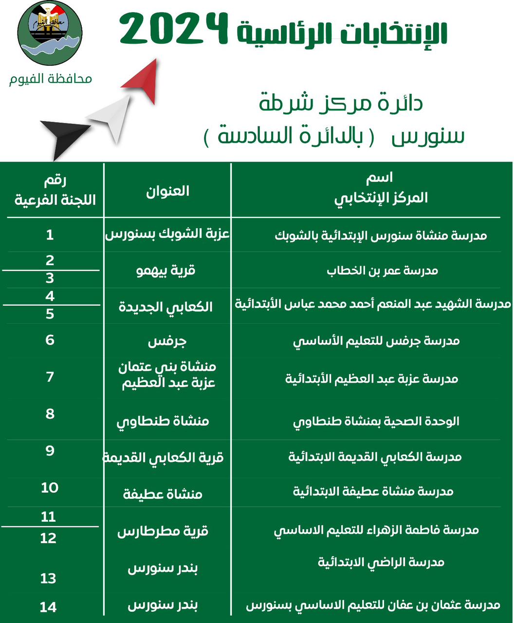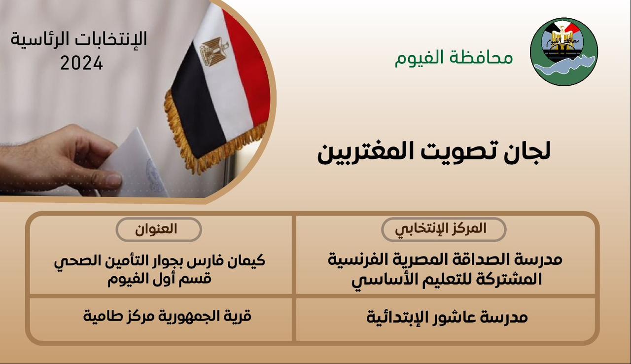 أسماء وعناوين مقار اللجان الانتخابية بمحافظة الفيوم