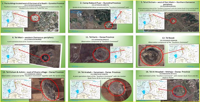 وتشير نتائج بحثنا إلى وجود 10 قرى في محافظة القنيطرة و14 قرية أخرى في محافظة درعا. وبرعاية فيلق القدس الإيراني (جزء من الحرس الثوري الإيراني)، تم إنشاء بنية تحتية إرهابية عسكرية على الحدود السورية مع إسرائيل، مما أتاح فتح جبهة أخرى على الحدود السورية، تعادل الجبهة اللبنانية ضد إسرائيل.