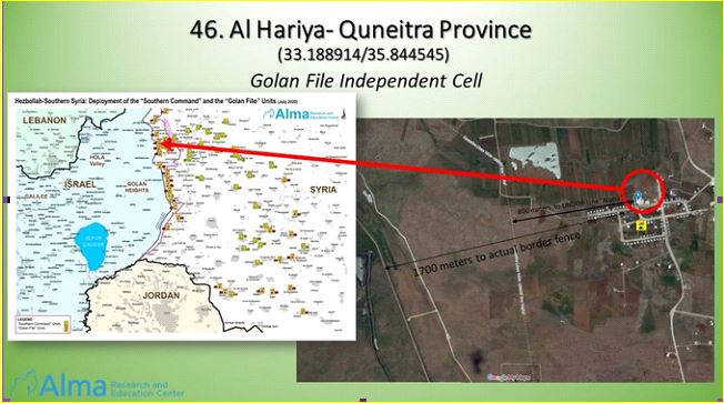 ويستعرض “ألما” من خلال تقرير عسكري وأمني مفصّل وحدة ملف الجولان التابعة لحزب الله المقاومة الاسلامية (قوات حزب الله) .